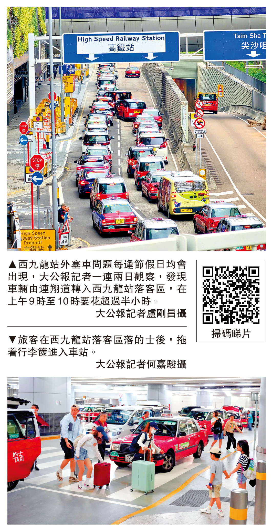 油尖旺區議員陳少棠接受《大公報》訪問時表示,附近一帶過去有不少建築及道路改善工程,近日遇上假期出行高峰,部分旅客搭的士前往高鐵站,上落車稍慢導致加劇擠塞,有關情況只是個別日子及部分時段出現,附近工程即將完工,情況將有所改善。\大公報記者 伍軒沛、姚棠、盧剛昌