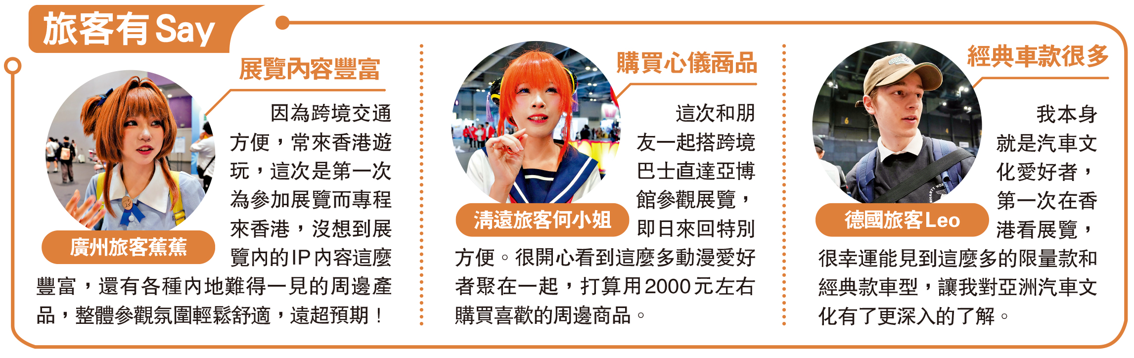 廣州旅客蕉蕉:因為跨境交通方便,常來香港遊玩,這次是第一次為參加展覽而專程來香港,沒想到展覽內的IP內容這麼豐富,還有各種內地難得一見的周邊產品,整體參觀氛圍輕鬆舒適,遠超預期!