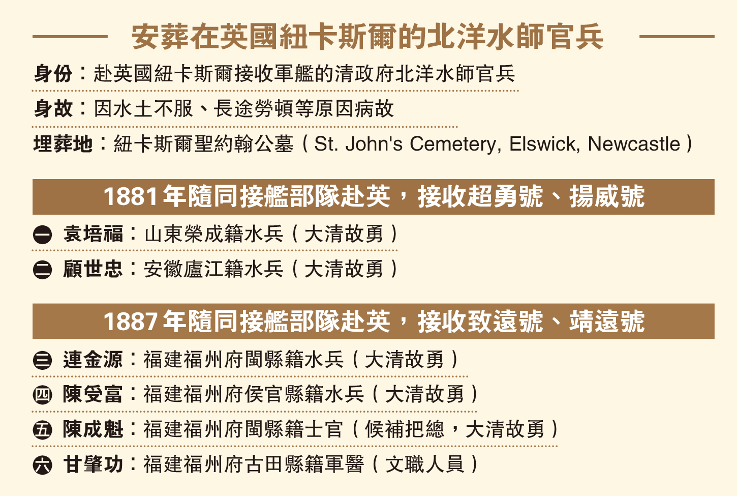 身份:赴英國紐卡斯爾接收軍艦的清政府北洋水師官兵