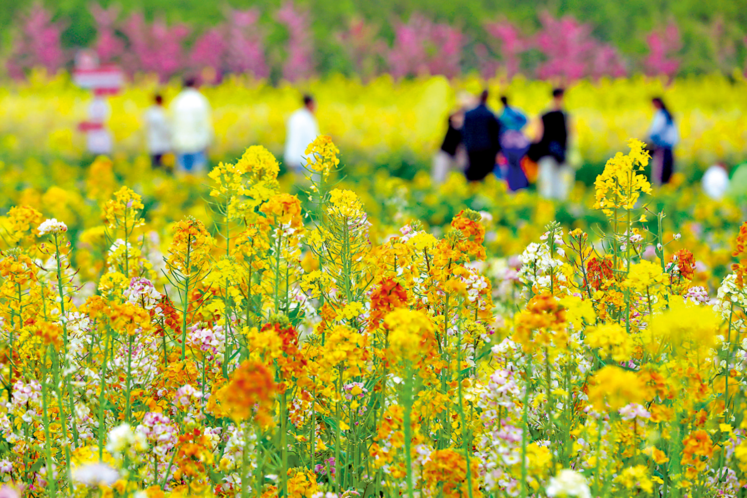 春風送暖,萬物向榮,神州大地春意盎然。近日,遊客在河南省焦作市溫縣黃河街道下石井村油菜花田遊玩賞花。\新華社