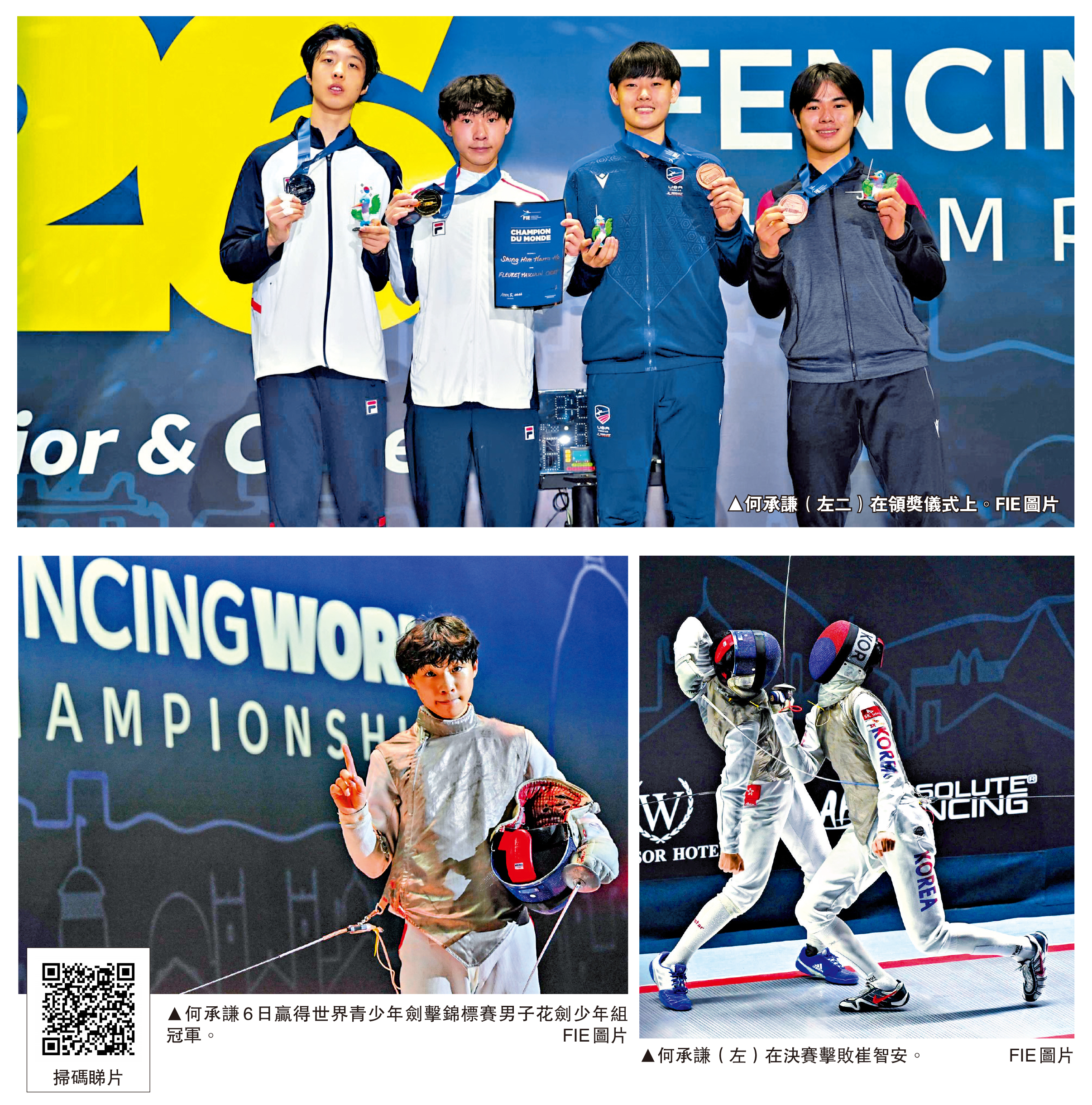 配合去年7月蔡俊彥在成人組劍擊世界錦標賽歷史性奪冠,港隊男子花劍在一年內,已先後囊括成人組、青年組及少年組三個年齡層的世界個人賽冠軍。