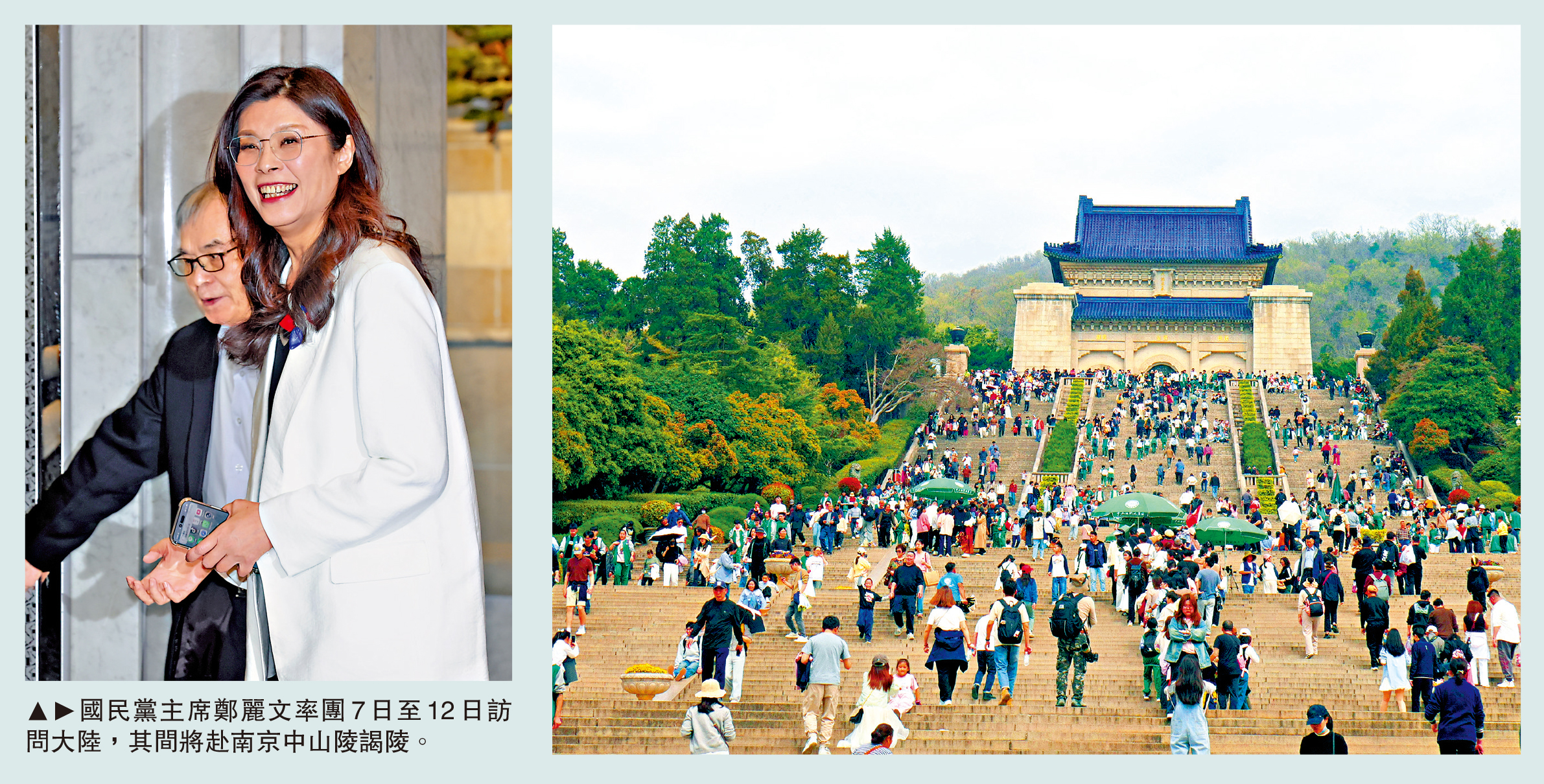【大公報訊】綜合台媒及中通社報道:鄭麗文一行7日由台北松山機場啟程,於當天下午飛抵上海,隨即前往南京,並於8日赴中山陵謁陵,再返回上海參訪與出席活動,預計在9日下午轉往北京訪問。