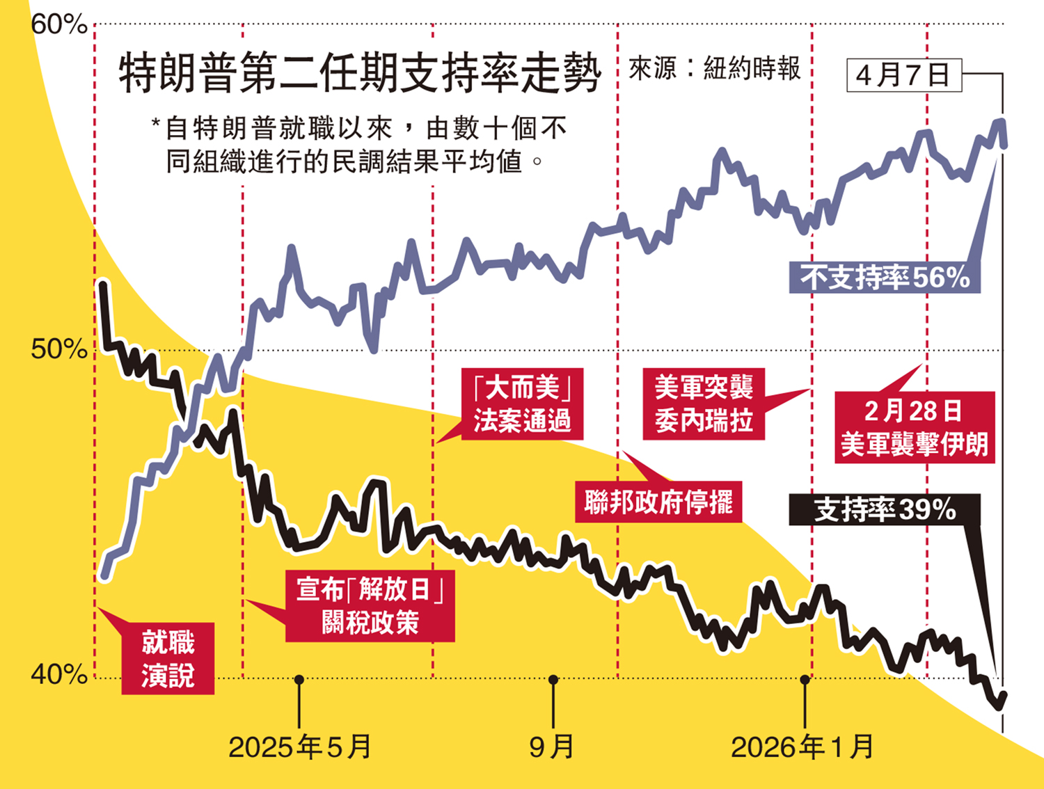 【大公報訊】綜合CNN、《紐約時報》報道:美國總統特朗普對伊朗開戰以來,在美國國內的民調支持率持續下降,已跌至新低。最新民調顯示,即便是特朗普的鐵桿支持者也開始後悔在2024年總統選舉中投票給他,共和黨中期選舉選情恐遭拖累。