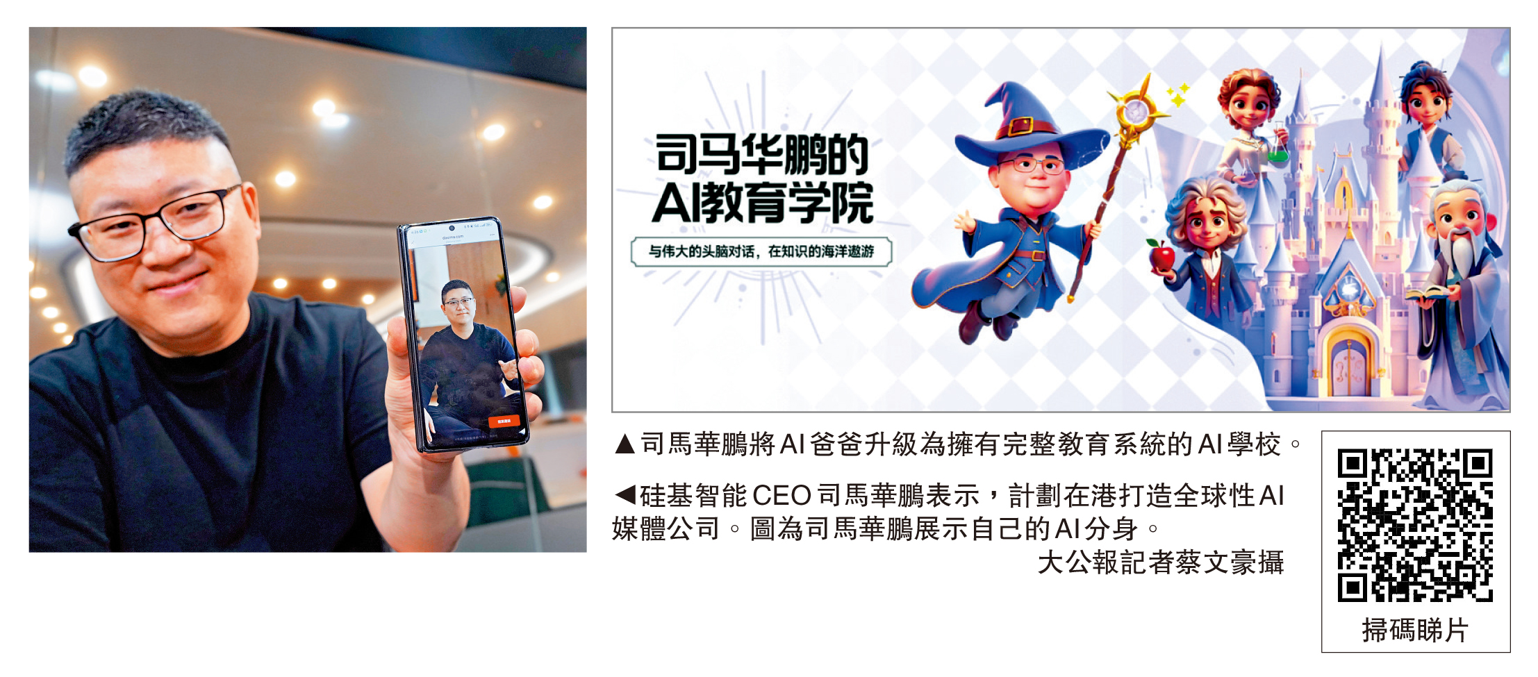 秉持着「世界破破爛爛,AI縫縫補補」的理念,司馬華鵬強調中國文化中「以和為貴、平權共處」與西方技術霸權的不同。他表示,致力於推動「AI平權」,將中國的大模型開源、普惠,希望以此引導全球技術倫理的走向。在他眼中,人的「命」有限,但「壽」與「願力」可以通過技術實現某種形式的永恆。\大公報記者 李慧妍