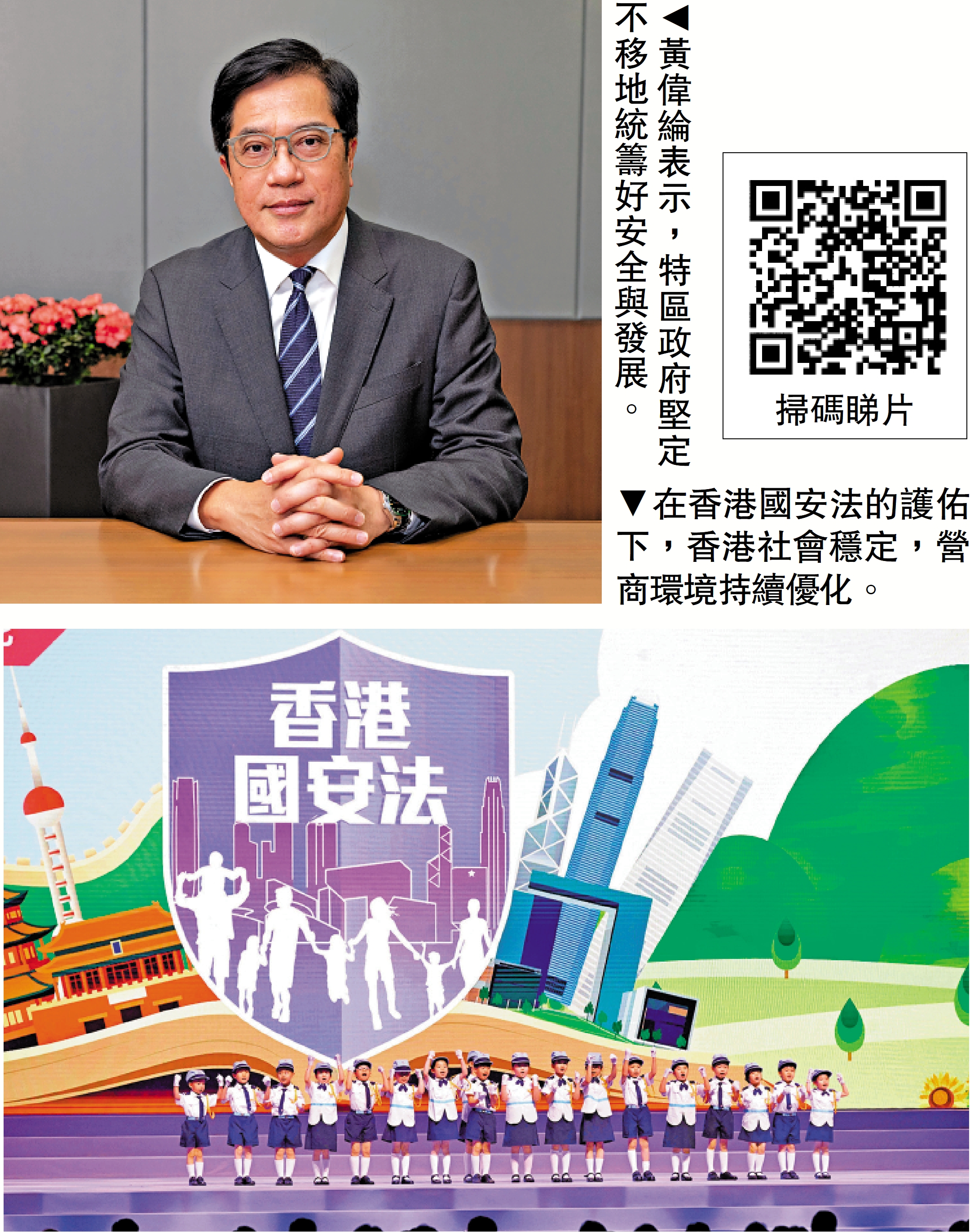 對於國務院新聞辦發布的《「一國兩制」下香港維護國家安全的實踐》白皮書,黃偉綸表示,白皮書全面總結了香港維護國家安全的歷程和經驗,闡述了以高水平安全護航「一國兩制」事業高質量發展的重點方向,為香港當前及長遠發展提供了明確指導。