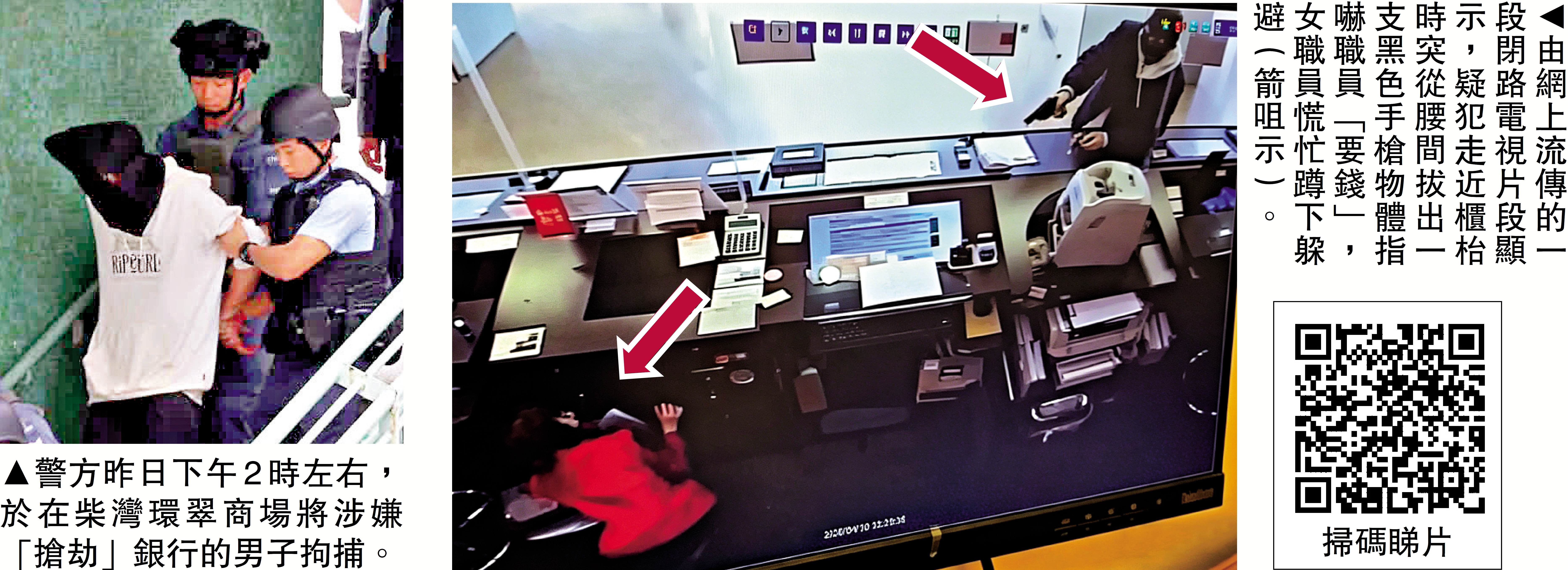 由事後網上流傳的一段閉路電視片段顯示,當時銀行櫃位正有一名女職員為一名女客戶提供服務,疑犯走近突從腰間拔出一支黑色手槍物體指嚇及拋入一個白色膠袋大喝「要錢」,女職員慌忙蹲下躲避,而該女顧客亦驚慌走避。隨後疑犯再從身上取出一把鐵錘猛力擊毀櫃位一塊透明膠片,雙方對峙下,一名男職員其後從櫃桶內拿出一疊鈔票放入疑犯拋入的膠袋內再遞予疑犯,疑犯隨後奪門逃走。整個過程不到2分鐘。