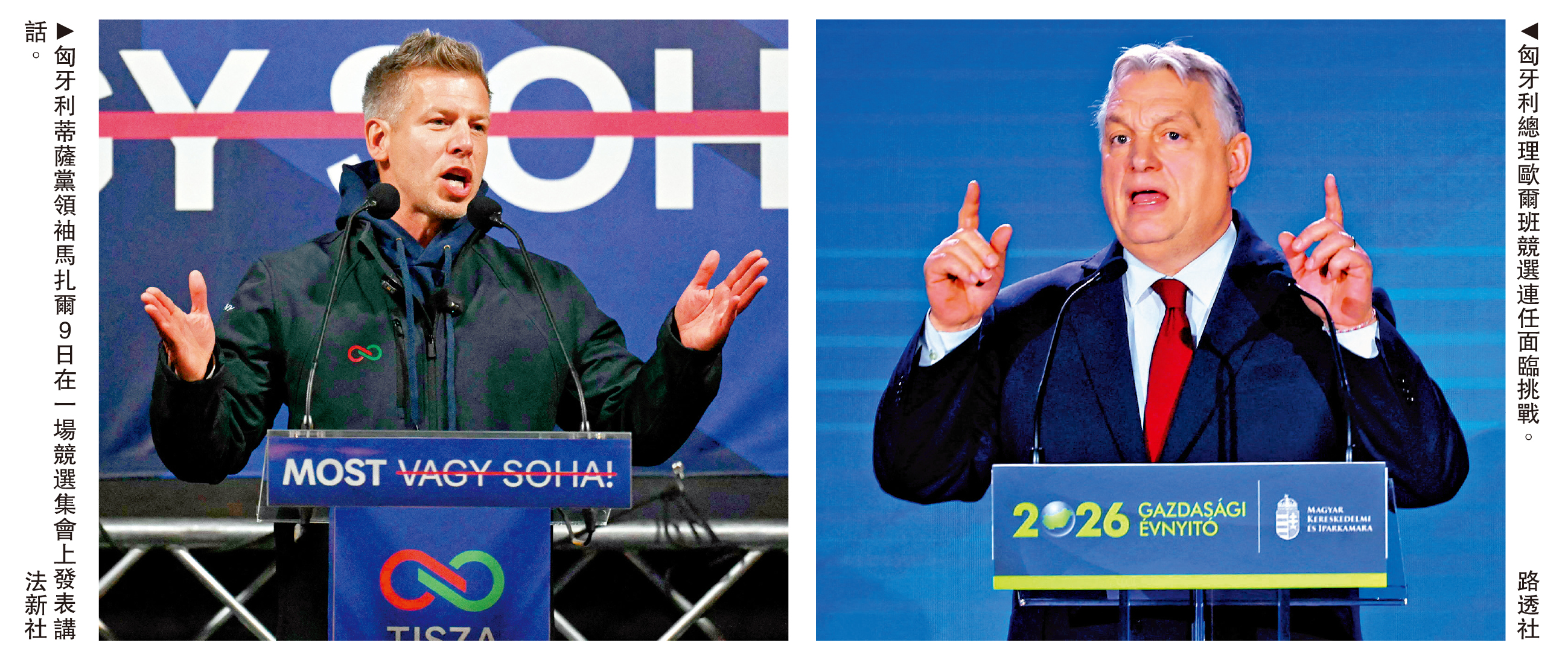 【大公報訊】現年62歲的歐爾班自2010年以來已經連續四次勝選,執政長達16年。歐爾班長期在移民、能源、烏克蘭等議題上與歐盟唱反調,同時與俄羅斯維持緊密的能源合作關係。此外,歐爾班也是美國總統特朗普的親密盟友,兩度支持特朗普競選。但在國內,經濟疲軟與貪腐爭議等問題令歐爾班選情承壓。數據顯示,匈牙利去年GDP增長率僅1%,在中東歐國家中墊底;年均收入及購買力均處歐盟下游,民眾不滿情緒持續升溫。反對黨蒂薩黨領袖馬扎爾則以貪腐整治、醫療改革與民生經濟改善為主攻方向,主張修復與歐盟的緊張關係,以期解凍此前被歐盟凍結的63億歐元資金,同時逐步降低對俄羅斯能源的依賴。