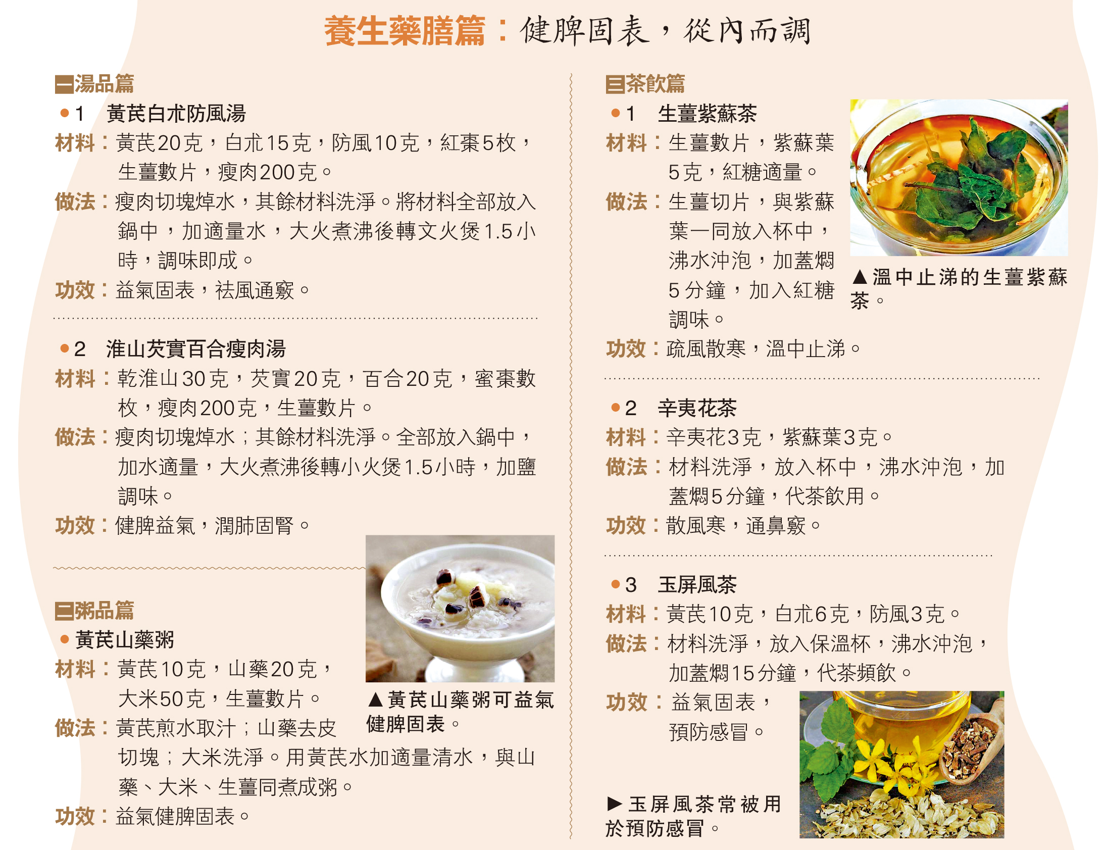 材料:黃芪20克,白朮15克,防風10克,紅棗5枚,生薑數片,瘦肉200克。