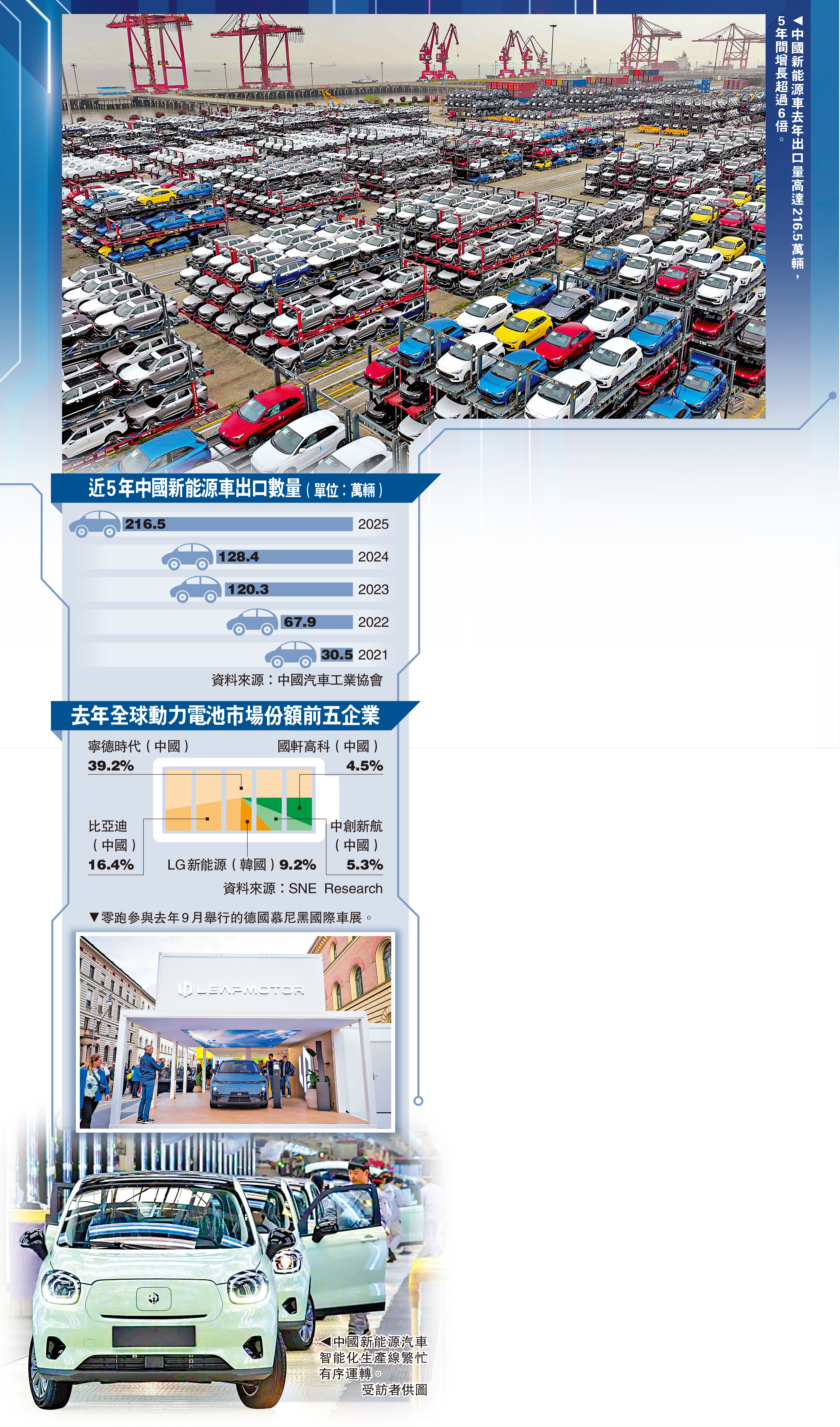 今年是「十五五」開局之年,開放型經濟邁上新台階,中國外貿「含新量」、「含綠量」持續攀升。據國家海關總署數據顯示,今年1至2月,「新三樣」(鋰電池、新能源車、光伏產品)的出口累計金額達到2337.2億元人民幣,同比增長50.7%。而隨着中國科技躍升,新的「新三樣」(人工智能、機器人、創新藥)亦迅速冒起,為中國外貿出口增添動力。《大公報》推出「『新三樣』走向世界」專題系列,探討各項產業在全球布局情況,以及未來發展方向。