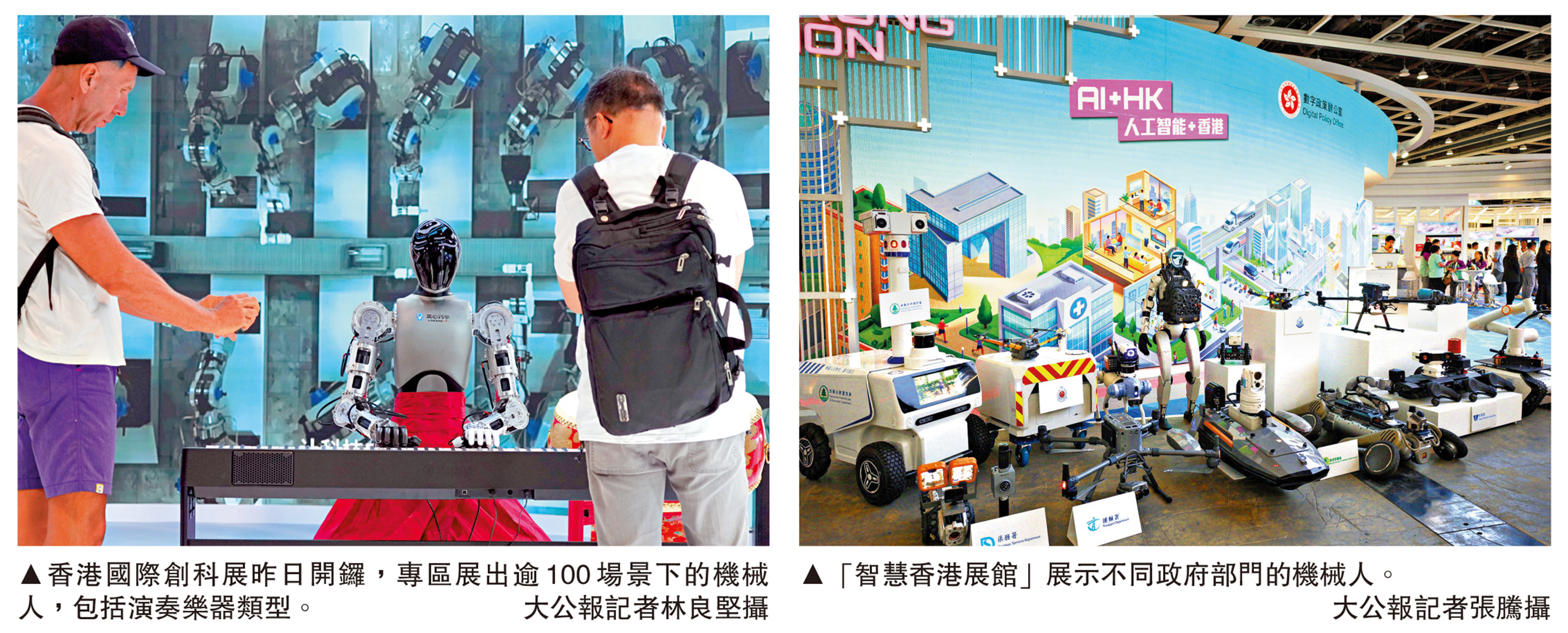 【大公報訊】記者張騰報道:一連四日在灣仔會展舉行的香港國際創科展(InnoEX)昨日開鑼,匯聚海內外科技企業,同場展示人工智能、虛擬人物、智慧辦公、物聯網等最新技術,首次登場的「RoboPark」展區,展出逾100個場景應用機械人。其中特區政府數字政策辦公室設立「智慧香港展館」,聚焦AI賦能香港不同領域的應用,展出超過20個政府部門和公營機構的63項創新科技展品,例如水務署的用於自動巡邏和監測水務設施的「智衛犬」等,吸引不少觀眾注目。