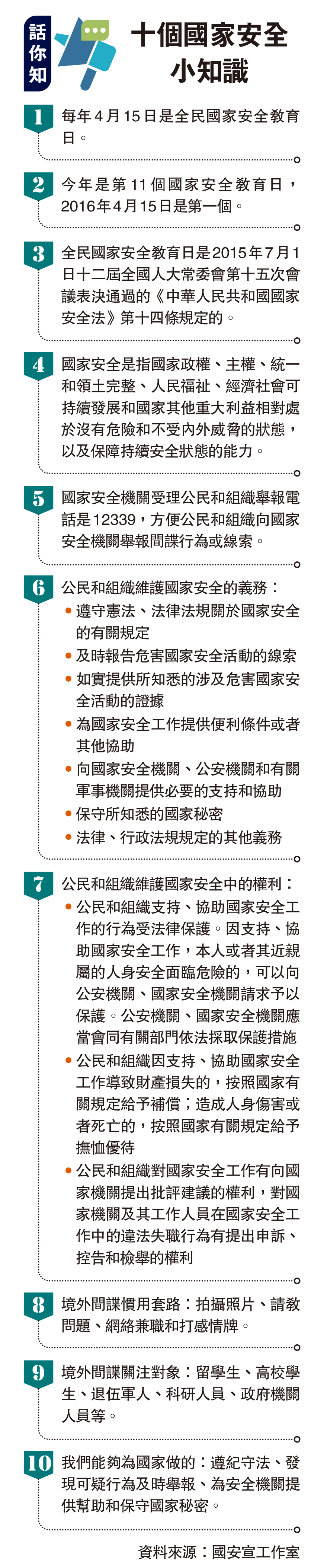 2.今年是第11個國家安全教育日,2016年4月15日是第一個。