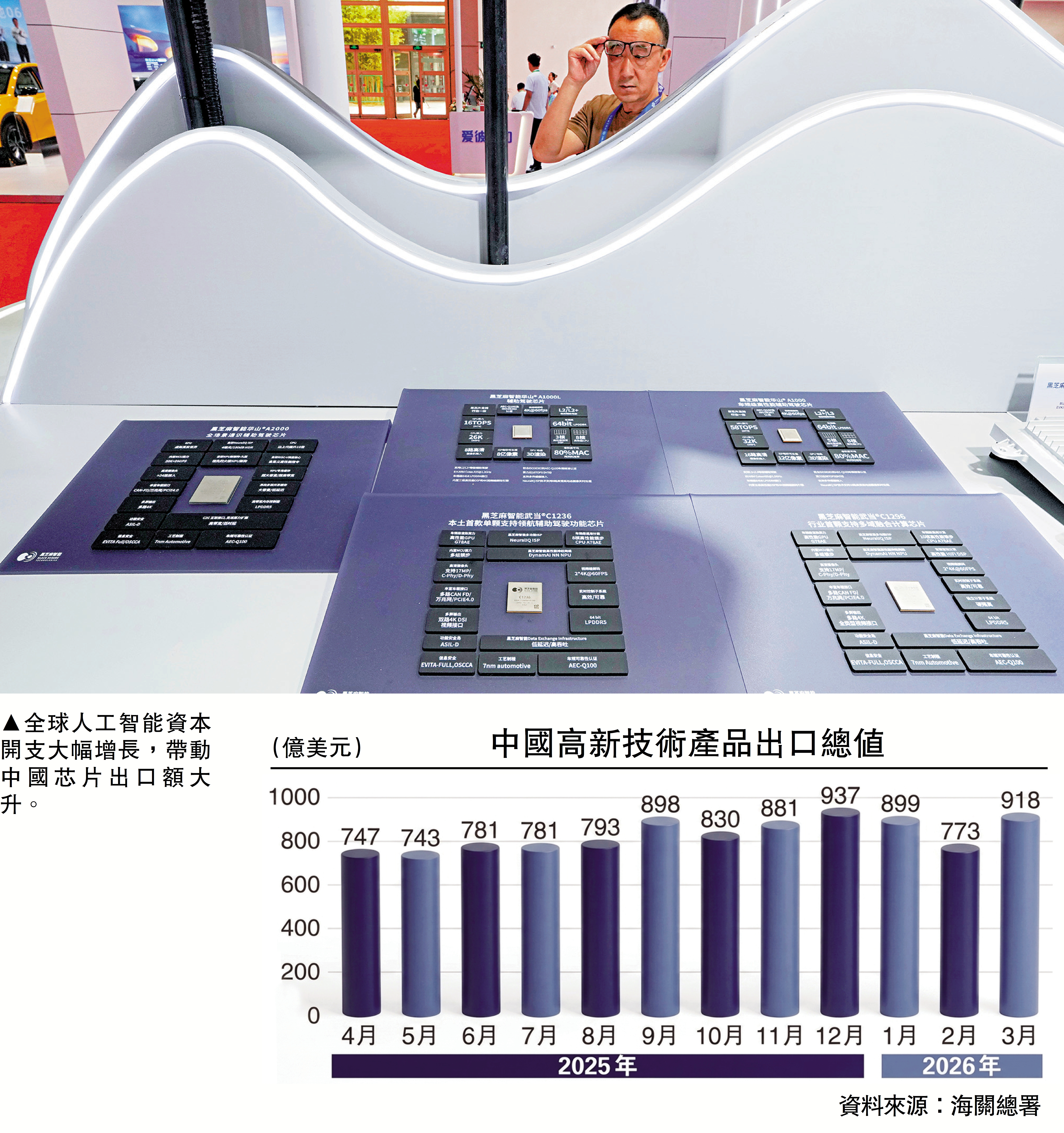 今年第一季度中國的出口增長理想,芯片出口的高增長有重要貢獻;而中國芯片出口的高增長被普遍認為與當下人工智能(AI)在全球範圍掀起一輪資本支出的高增長有關。