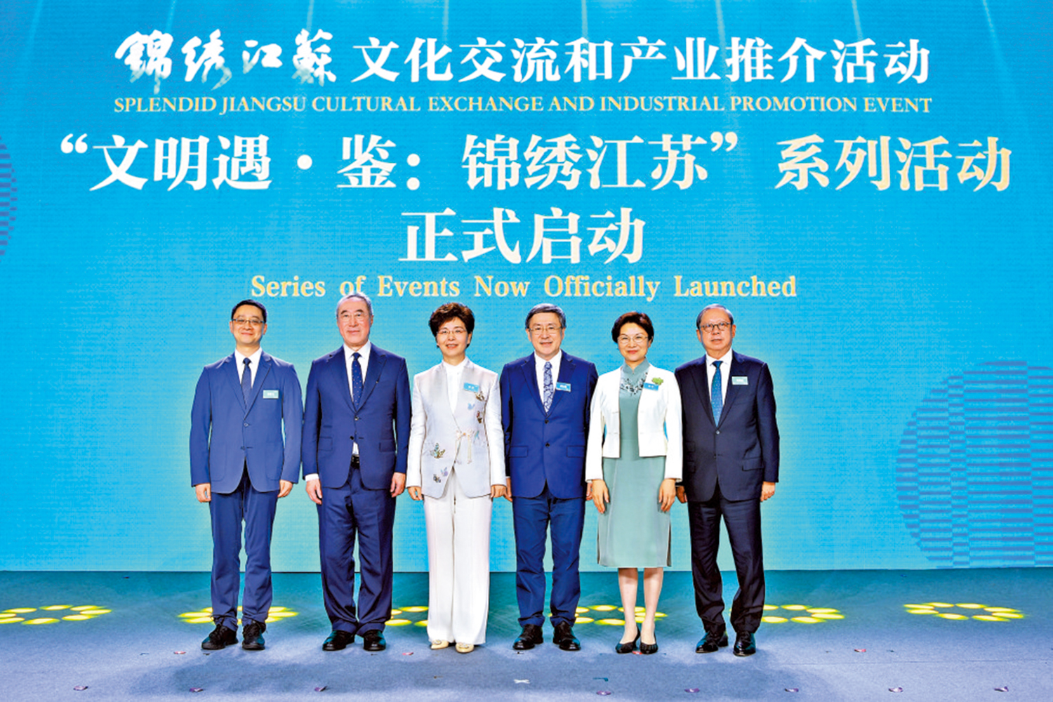 江蘇省委常委、省委宣傳部部長徐纓,特區政府政務司副司長卓永興,全國政協常委、香港江蘇社團總會創會會長唐英年,香港麗新集團主席、香港旅遊發展局主席林建岳,紫荊文化集團董事長許正中,全國政協常委姚志勝,江蘇省委宣傳部副部長徐寧,中央政府駐港聯絡辦宣傳文體部副部長林枬等嘉賓齊聚一堂,見證跨越長江與香江的文化之約、產業之盟。