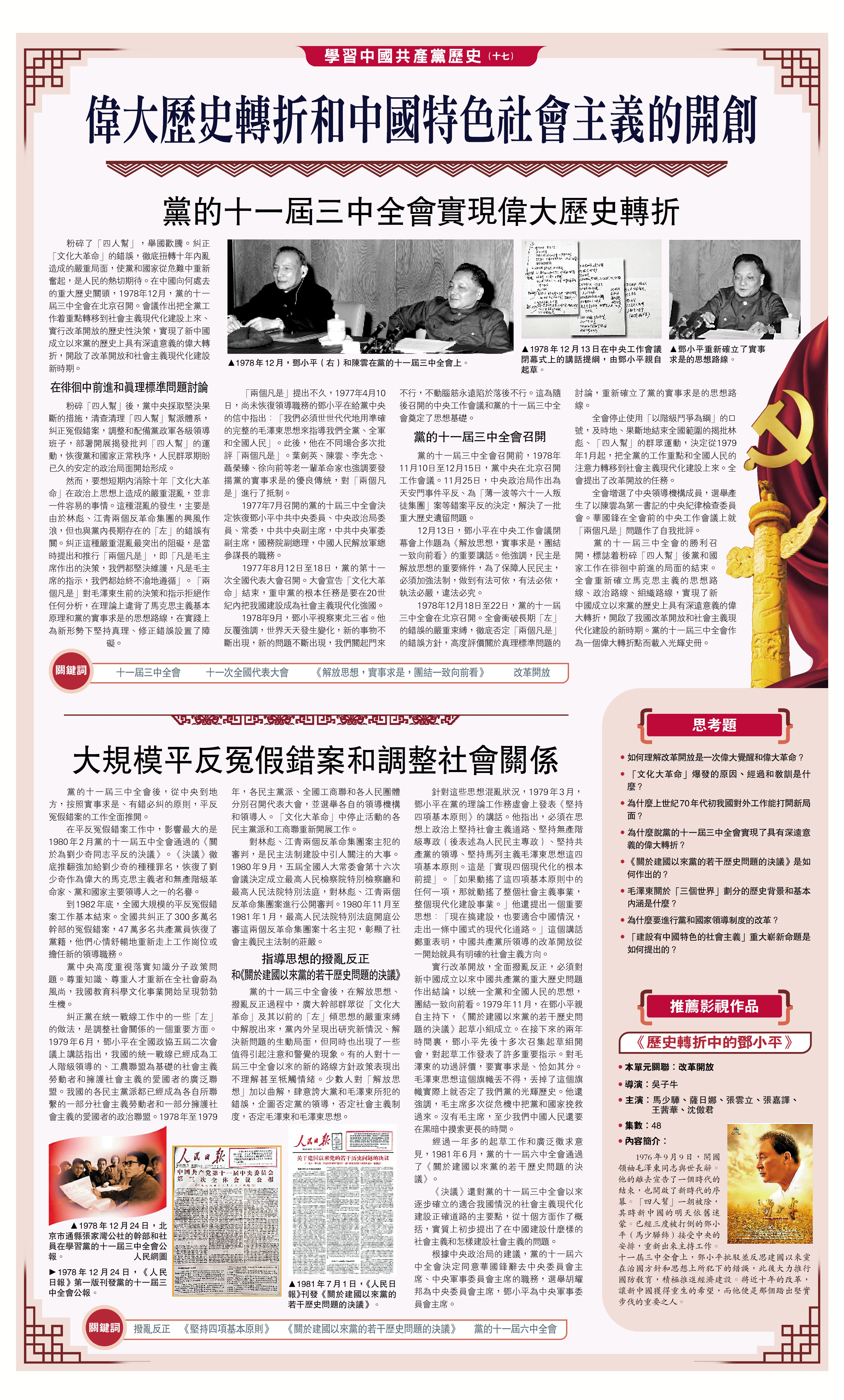 1977年8月12日至18日,黨的第十一次全國代表大會召開。大會宣告「文化大革命」結束,重申黨的根本任務是要在20世紀內把我國建設成為社會主義現代化強國。