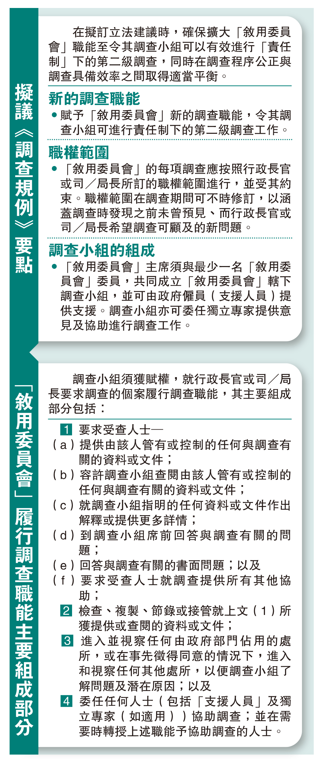 •賦予「敘用委員會」新的調查職能,令其調查小組可進行責任制下的第二級調查工作。