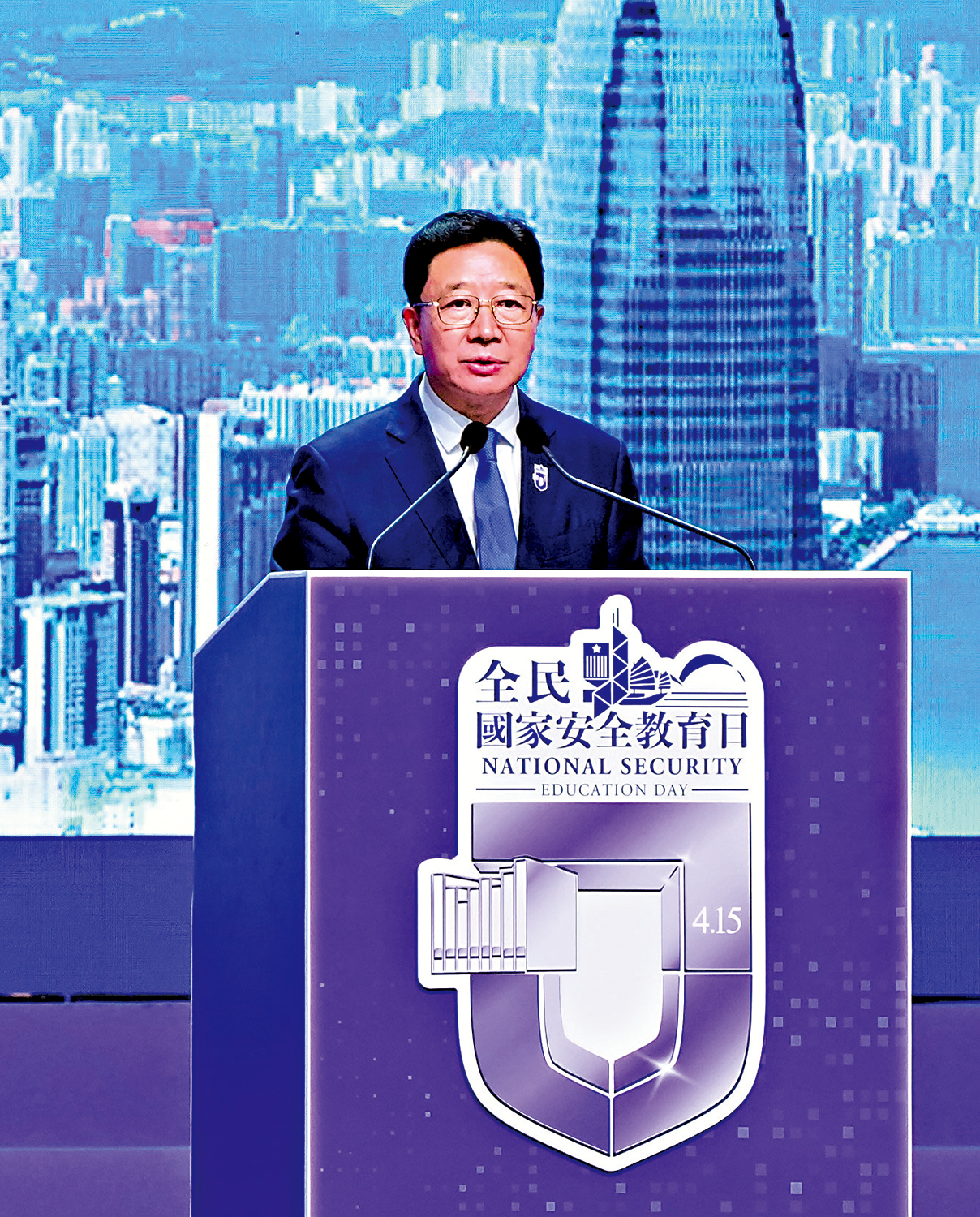 【大公報訊】記者龔學鳴報道:4月15日,香港特區2026年「全民國家安全教育日」活動開幕典禮在香港會展中心舉行。中央政府駐港聯絡辦主任、特區國安事務顧問周霽在致辭中表示,習近平主席強調,維護國家主權、安全、發展利益是「一國兩制」方針的最高原則。夏寶龍主任在發表的致辭中,深入貫徹習近平主席重要講話精神,從開創「十五五」時期「一國兩制」事業新局面的高度,深刻闡釋「以高水平安全護航香港由治及興」需要把握的四點要求,對於特區搶抓機遇主動對接國家「十五五」規劃,促進高質量發展和高水平安全良性互動,具有十分重要的指導意義。中央政府駐港聯絡辦將認真貫徹落實中央要求,繼續堅定支持特區履行好維護國家安全的憲制責任,樹牢總體國家安全觀,更好統籌發展和安全,不斷鞏固拓展由治及興良好局面。