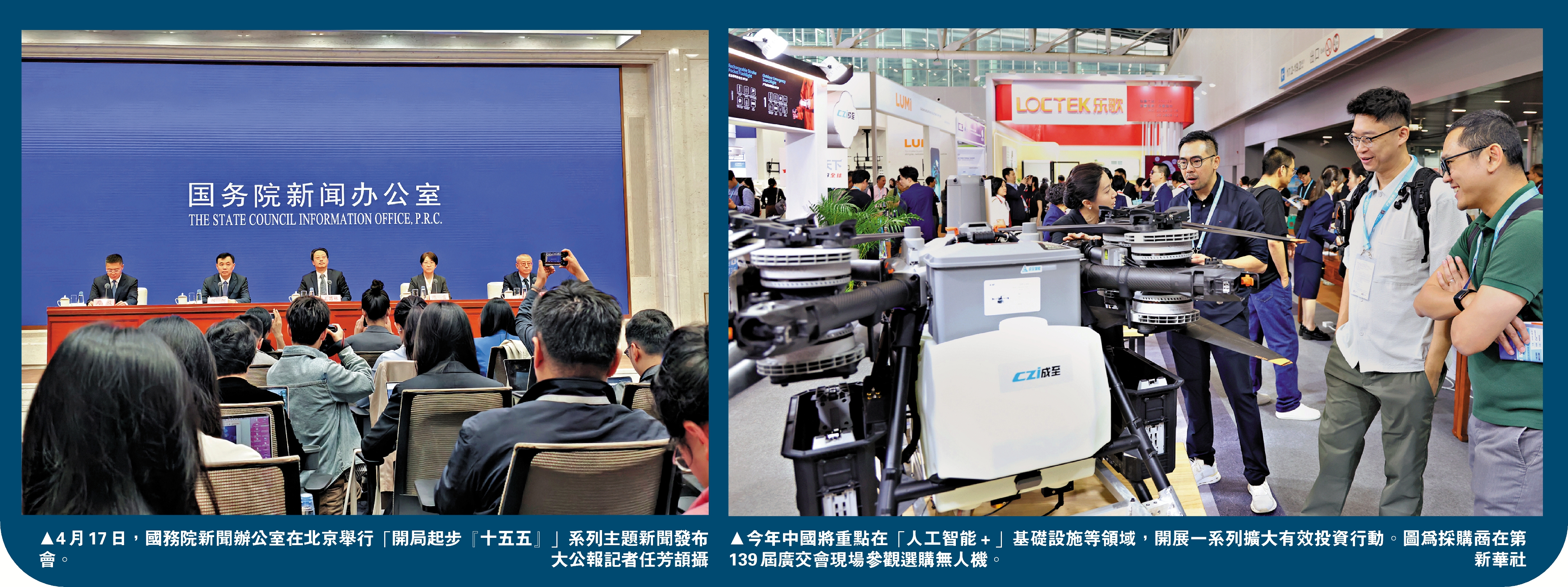 國家發改委副主任王昌林介紹,「十五五」首季經濟實現平穩良好開局,投資、消費、價格等指標明顯改善。今年中國將重點在「人工智能+」基礎設施等領域,開展一系列擴大有效投資行動。其中,將加快有序投放8000億元(人民幣,下同)新型政策性金融工具資金,積極擴大央地合作。\大公報記者 任芳頡北京報道