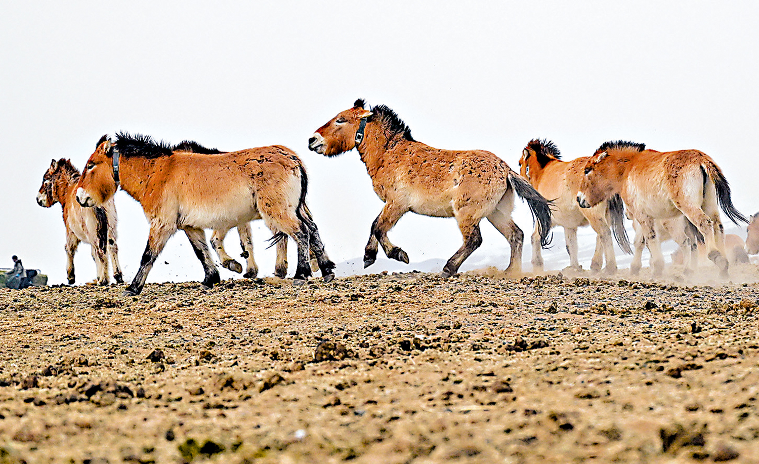 據恩特馬克介紹,野馬中心建立後,國家持續給予資金支持,尤其是2016年以後,國家每年投入都在1000萬元(人民幣,下同)以上,極大地改善了野馬中心的基礎設施條件。經過近四十年的發展,「野馬還鄉」計劃取得了豐碩成果:一是野馬種群數量不斷擴大。截至2024年底,我國普氏野馬種群數量已突破900匹,佔全球總量的1/3。其中,新疆繁殖數量突破800匹,野放18個批次146匹,使新疆普氏野馬數量增長至357匹,形成27個穩定種群。目前,普氏野馬已在祁連山、大青山、賀蘭山等地繁衍生息,種群規模逐漸壯大。二是軟硬件建設翻天覆地。從早期的地窩子住房,發展到目前擁有現代化的辦公樓、職工餐廳和400多平方米的野馬醫院,極大改善了人與馬的工作和飼養環境。