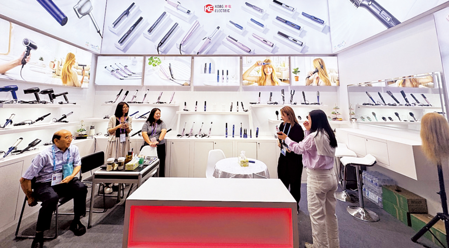 主營個人護理類小家電的港企東莞港電電器製品有限公司今年首次亮相廣交會現場,在展示區,港電重點展示了美髮類產品,其中無線充電類產品作為技術創新的代表產品被放在「C位」展示。