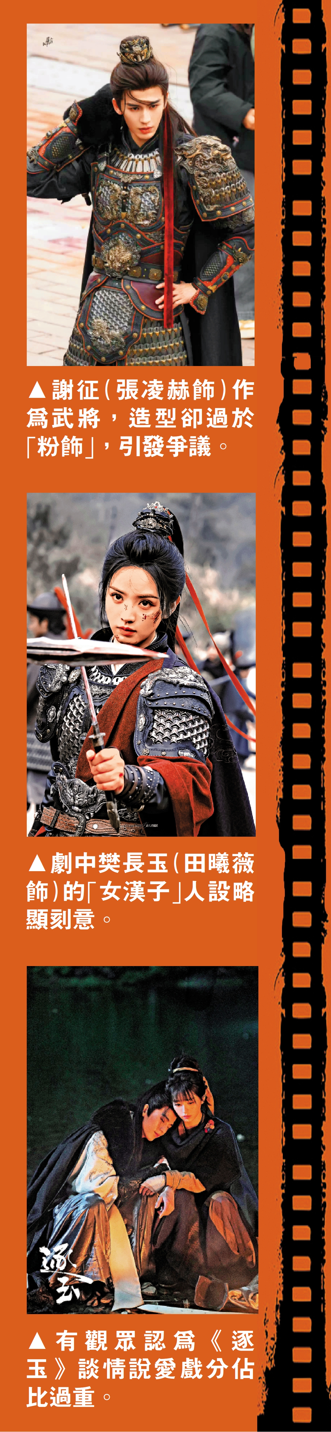 細細想來,此劇最大的問題就是過度美化男女主人公,把其他人物當「捧哏」。此外,《逐玉》因為過於突出「男帥女美」「顏值觀凌駕於價值觀之上」,謝征作為一員武將,過於「粉飾」的五官,令主流媒體也發出評論文章,直指是「粉底液將軍」「高跟鞋女戰士」,不僅與觀眾心目中真正的武將形象相差甚遠,也不符合劇情本身戰場情境的設定。