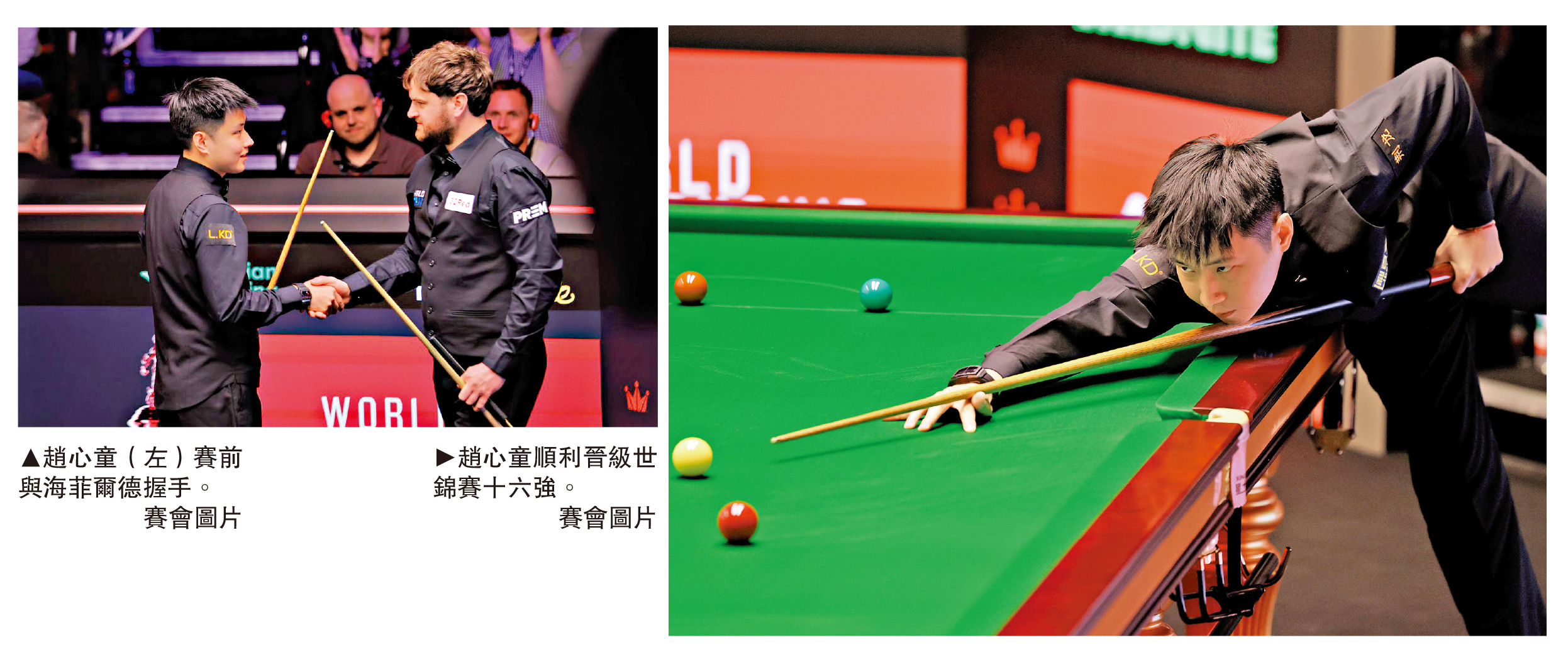 2026桌球世界錦標賽正賽於當地時間4月18日在英國謝菲爾德開桿,上屆冠軍、中國球手趙心童首戰以10:7戰勝英格蘭的海菲爾德,晉級16強。