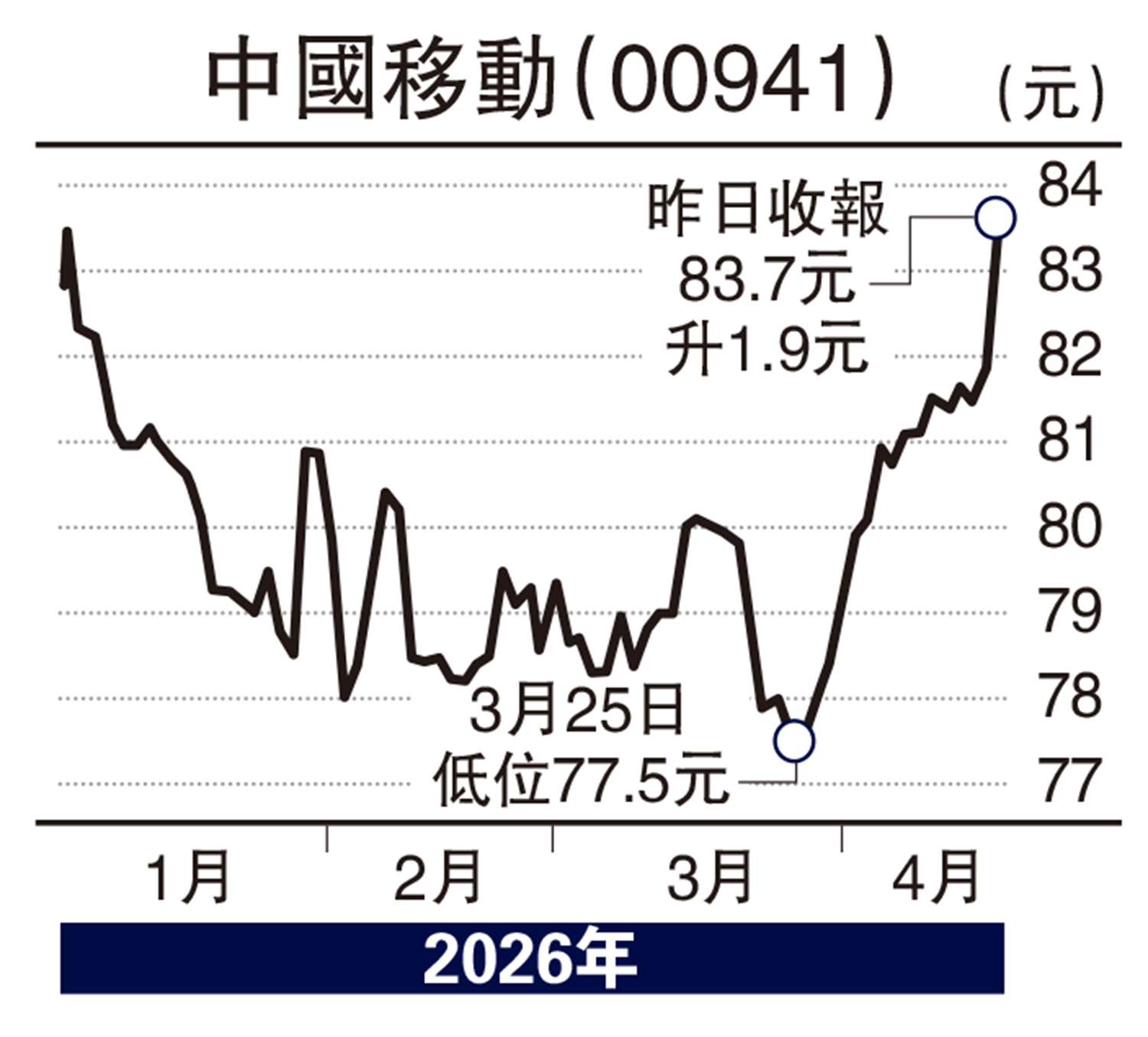 中國移動(00941)公布季度業績後,買家雀躍,在大戶大手吸納下,高收83.7元,升2.3%,最令人驚喜的是經營活動產生的現金流量淨額高達714.47億元人民幣,按年升1.28倍,現金流大增,說明可以繼續慷慨派高息以回饋股東,這是該股上升的最大原由。大行高盛點評中移動,將目標價調高至105元。