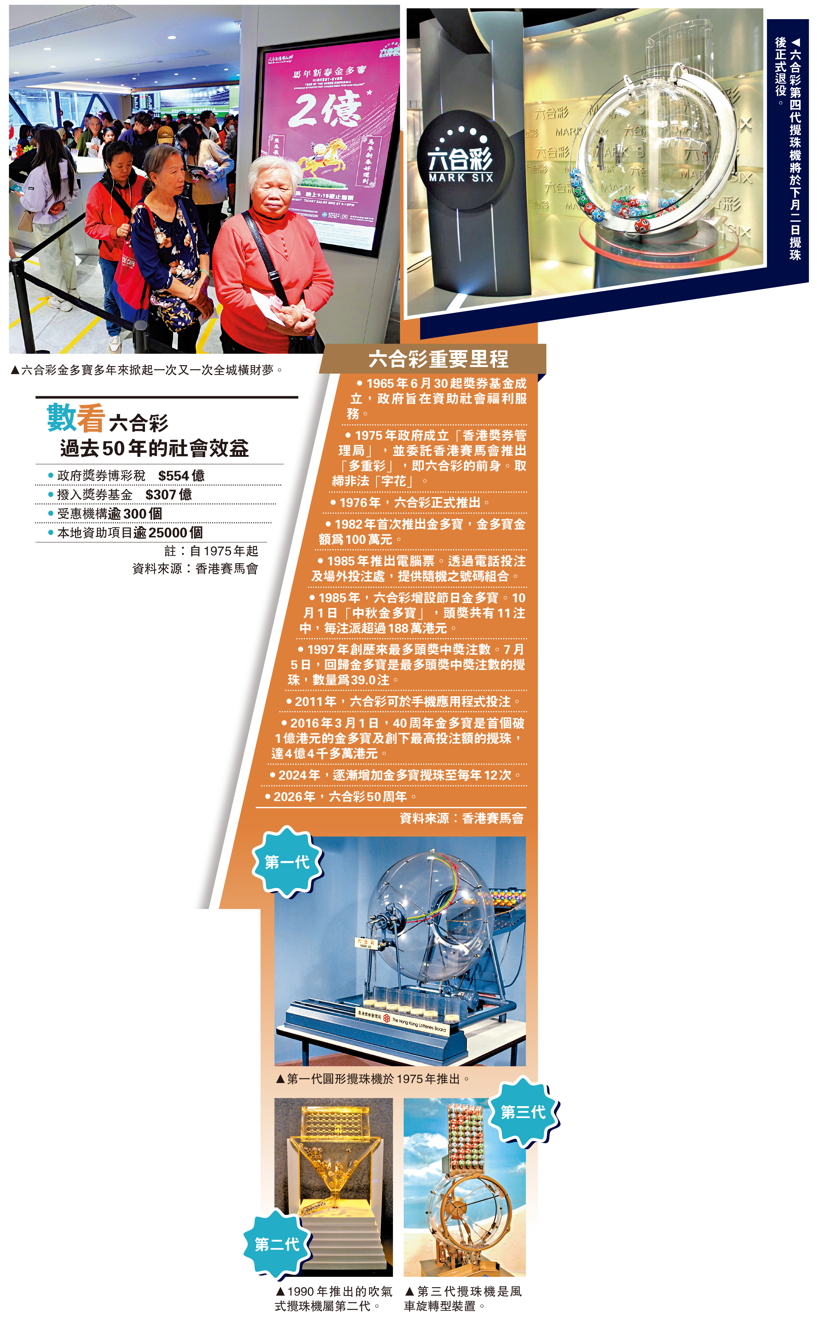 馬會現時使用的第四代攪珠機,見證了六合彩16年歷史,將於5月2日50周年金多寶攪珠後退役。賽馬會表示,隨後的攪珠將採用全新的第五代攪珠機進行,繼續恪守嚴格監管規定,根據嚴謹機制確保攪珠的過程公平、公正及公開。