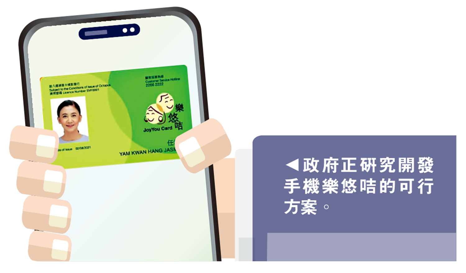 勞工及福利局局長孫玉菡回覆表示,政府一直留意2元優惠受惠人士對電子服務的需求,並持續與八達通公司及各公共交通營辦商保持溝通,研究開發手機版樂悠咭的可行方案。他稱,推行手機樂悠咭須滿足多方面要求,包括必須具備可靠且有效的防偽及身份識別功能,以便執法人員和公共交通營辦商的前線職員有需要時可快捷地核實乘客身份,杜絕違規使用的情況。手機樂悠咭亦須便利長者及合資格殘疾人士使用,以及配合公共交通營辦商的營運需要。