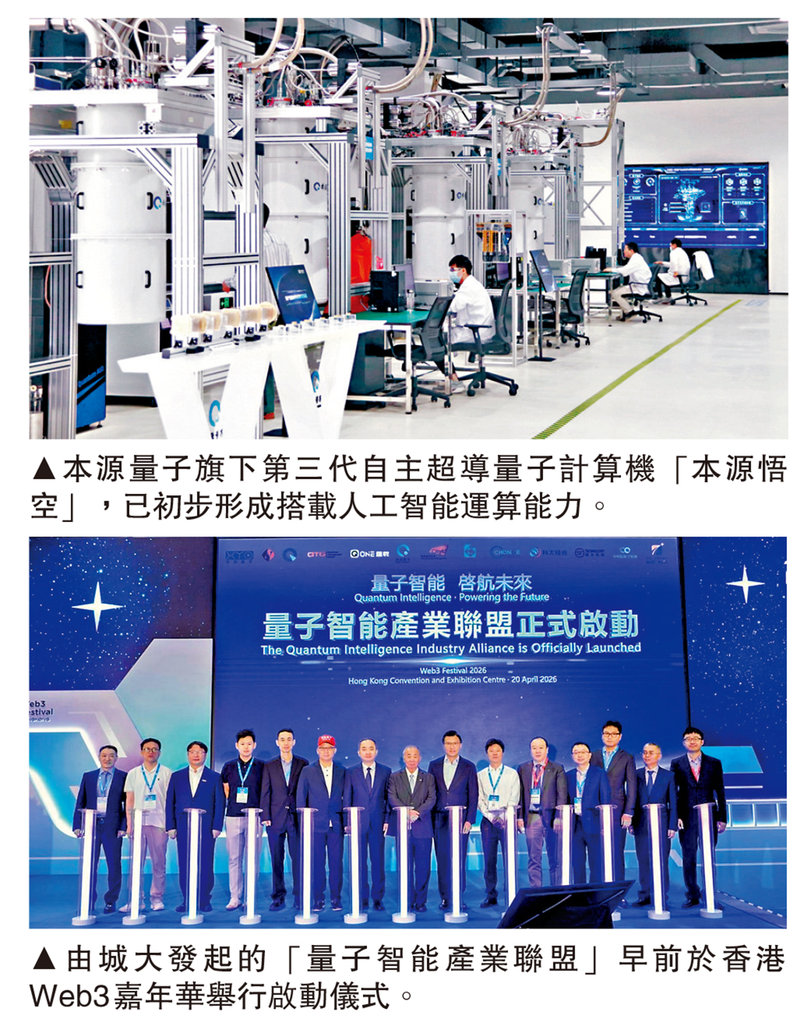 安徽省人民政府日前在香港主辦「2026皖港創新發展合作夥伴會議」上,城大與本源量子簽訂合作協議,包括在港部署首台量子計算真機,可於實際場景應用。量子計算機是利用量子物理學機制製作的新型計算機,運行量子算法,運算能力強,在處理極端複雜問題上,展現出傳統計算機無法比擬的「指數級加速」優勢。城大表示,在本港部署量子計算真機,可為本地科研人員和產業界提供直接操作、使用及研究量子計算硬件的機會,進而加強香港對相關技術的認識,促進構建更先進的底層算力基礎設施並推動探索尖端科技。