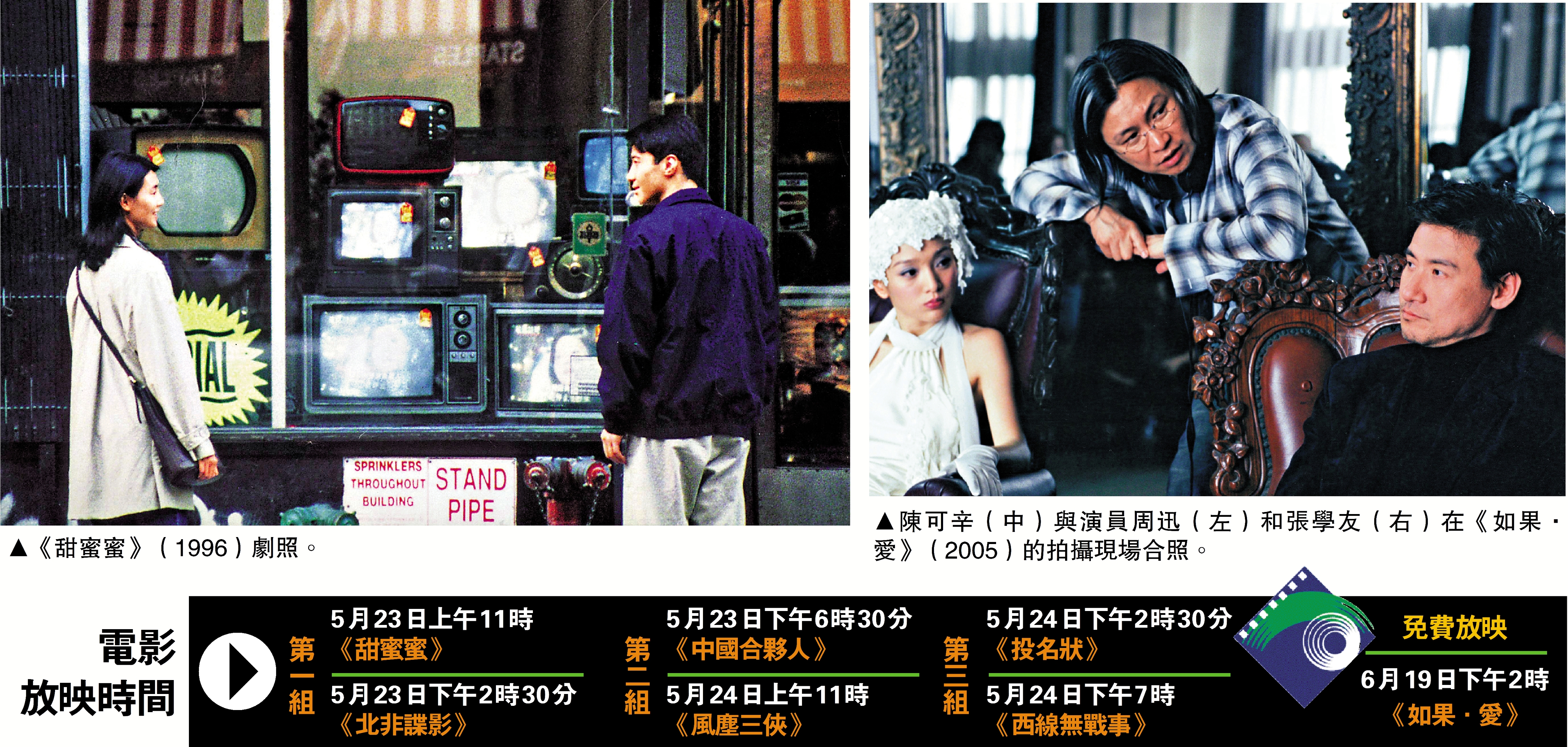 【大公報訊】適逢香港電影資料館(資料館)25周年,資料館將推出三輯「星級影談」系列節目。首輯節目將放映囊括金像獎、金馬獎和金雞獎的導演陳可辛親自選出的四部代表作,以及兩部對他影響深遠的荷里活經典,於5月23日及24日在資料館電影院放映,並出席由影評人登徒主持的映前或映後談,與觀眾分享他跨越文化和年代的電影世界。門票今日起於城市售票網發售。