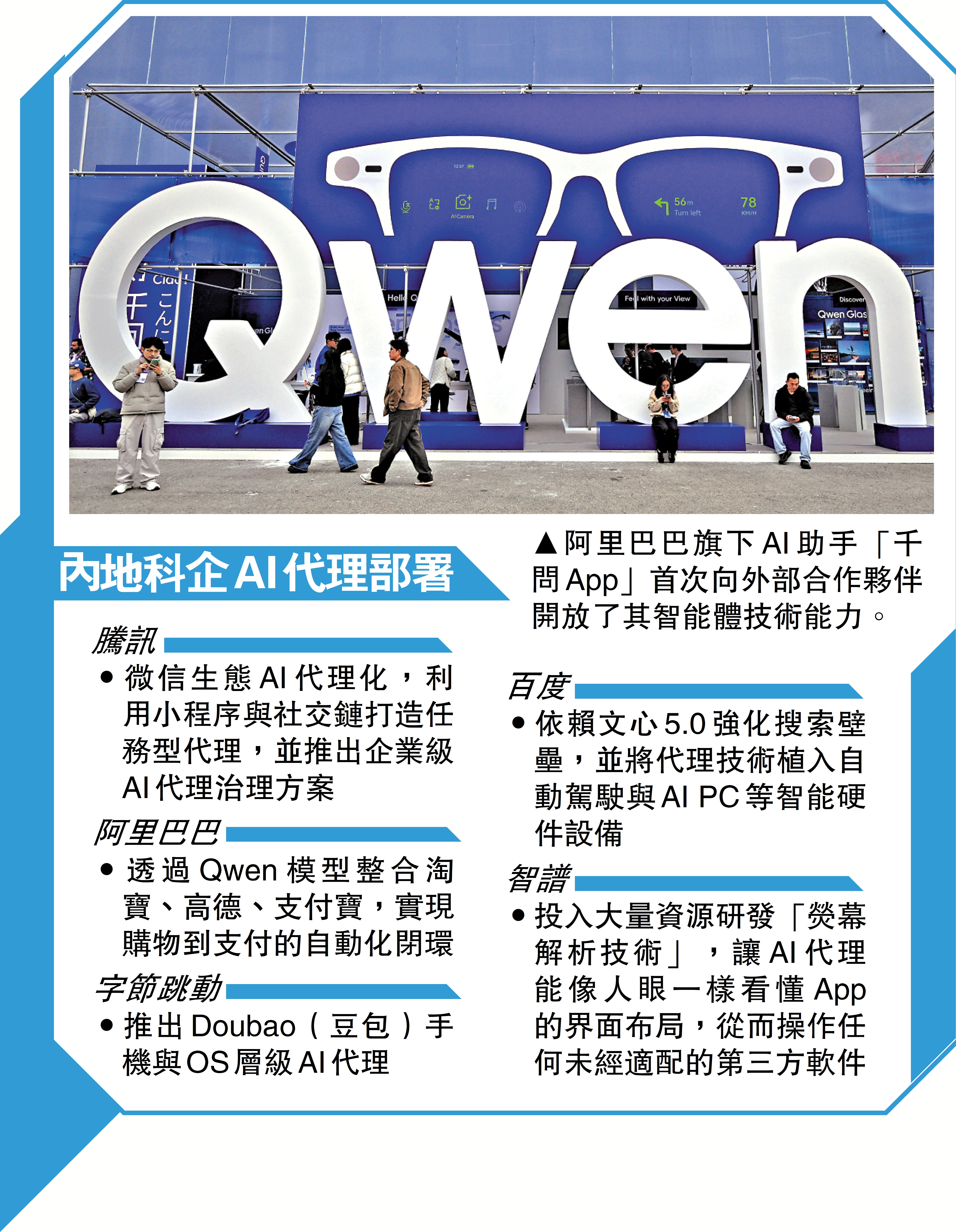 阿里巴巴(09988)旗下AI助手「千問App」首次向外部合作夥伴開放了其Agent(智能體)技術能力,並率先接入中國東方航空(00670),標誌着千問從單純的聊天對話向主動服務的「AI辦事」生態轉型。\大公報記者 麥晉瑋