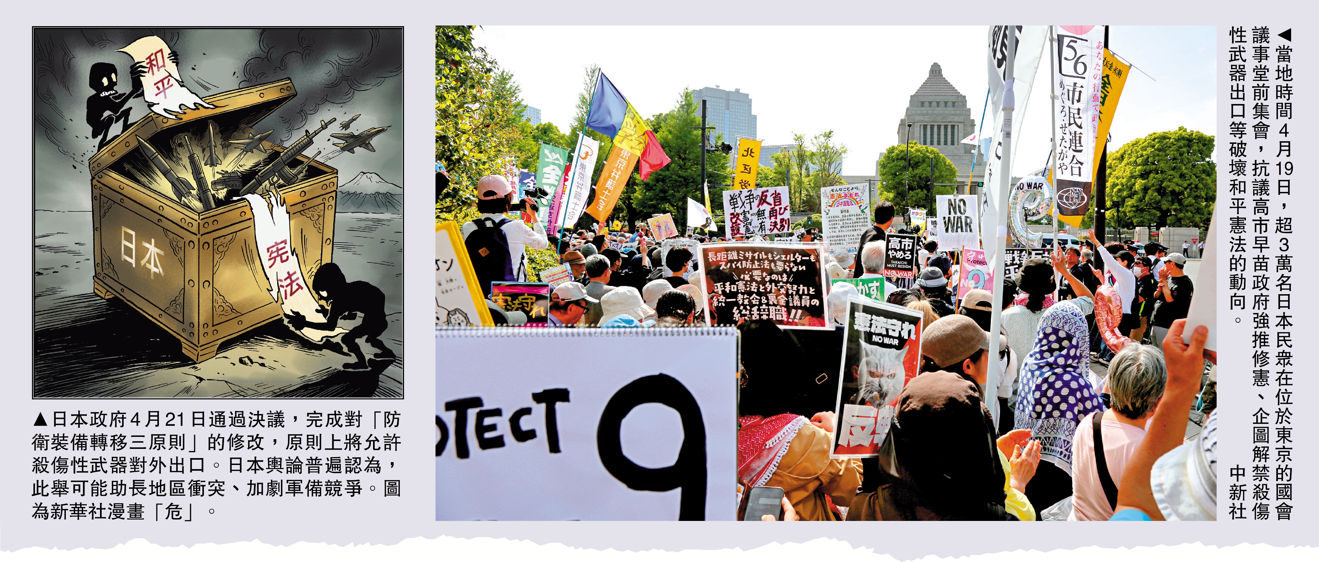 「這再次表明,日本『新型軍國主義』成勢為患是不爭的事實,構成現實的威脅。」郭嘉昆說,一個行動上推動修改憲法、放寬殺傷性武器出口、部署進攻性導彈、大幅擴充軍費的日本,嘴上說得再天花亂墜,也掩蓋不了為軍事擴張鋪路的真實意圖。日本還同北約頻頻互動,試圖將域外軍事組織引入亞太,挑動對抗之心昭然若揭。