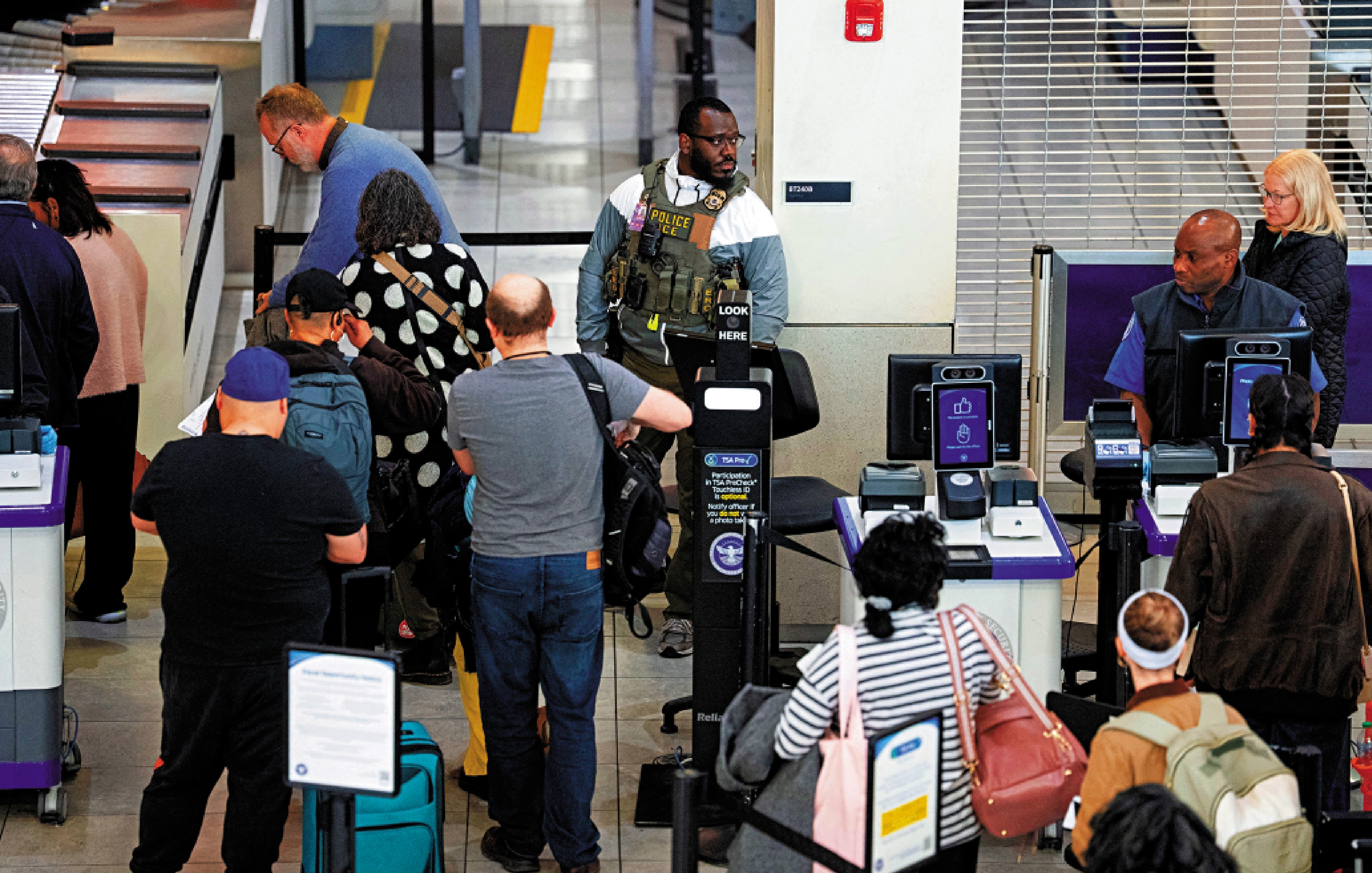圖︰今年3月29日,一名美國移民與海關執法局特工在位於巴爾的摩的馬歇爾國際機場安檢點巡邏。\路透社