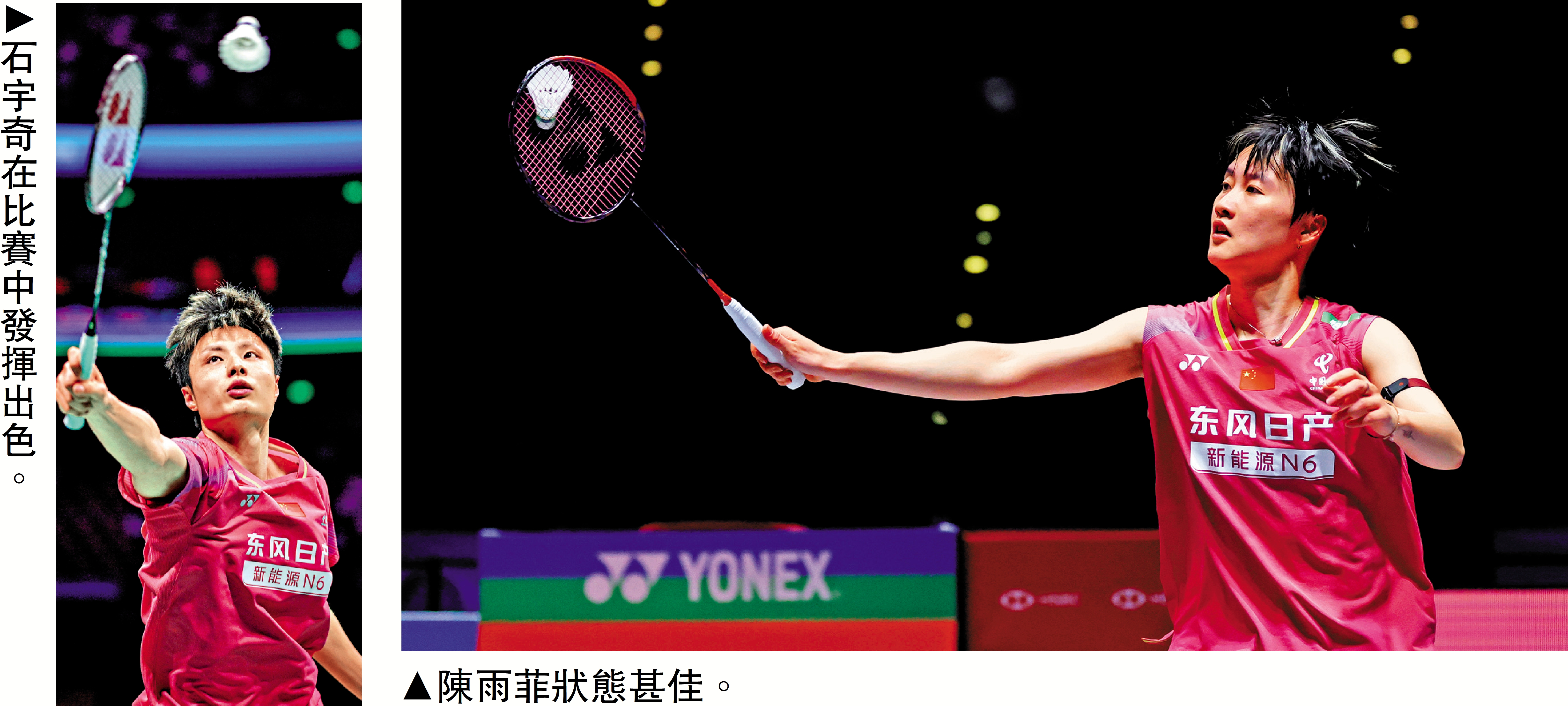 中國女隊當日登場迎戰烏克蘭隊。因烏克蘭選手兼項比賽,兩隊採用先單打後雙打的比賽順序。出任第一單打的陳雨菲在對陣烏克蘭「一單」拉夫羅娃的比賽中,迅速掌握比賽節奏,以21:9、21:14為國家隊先拔頭籌。