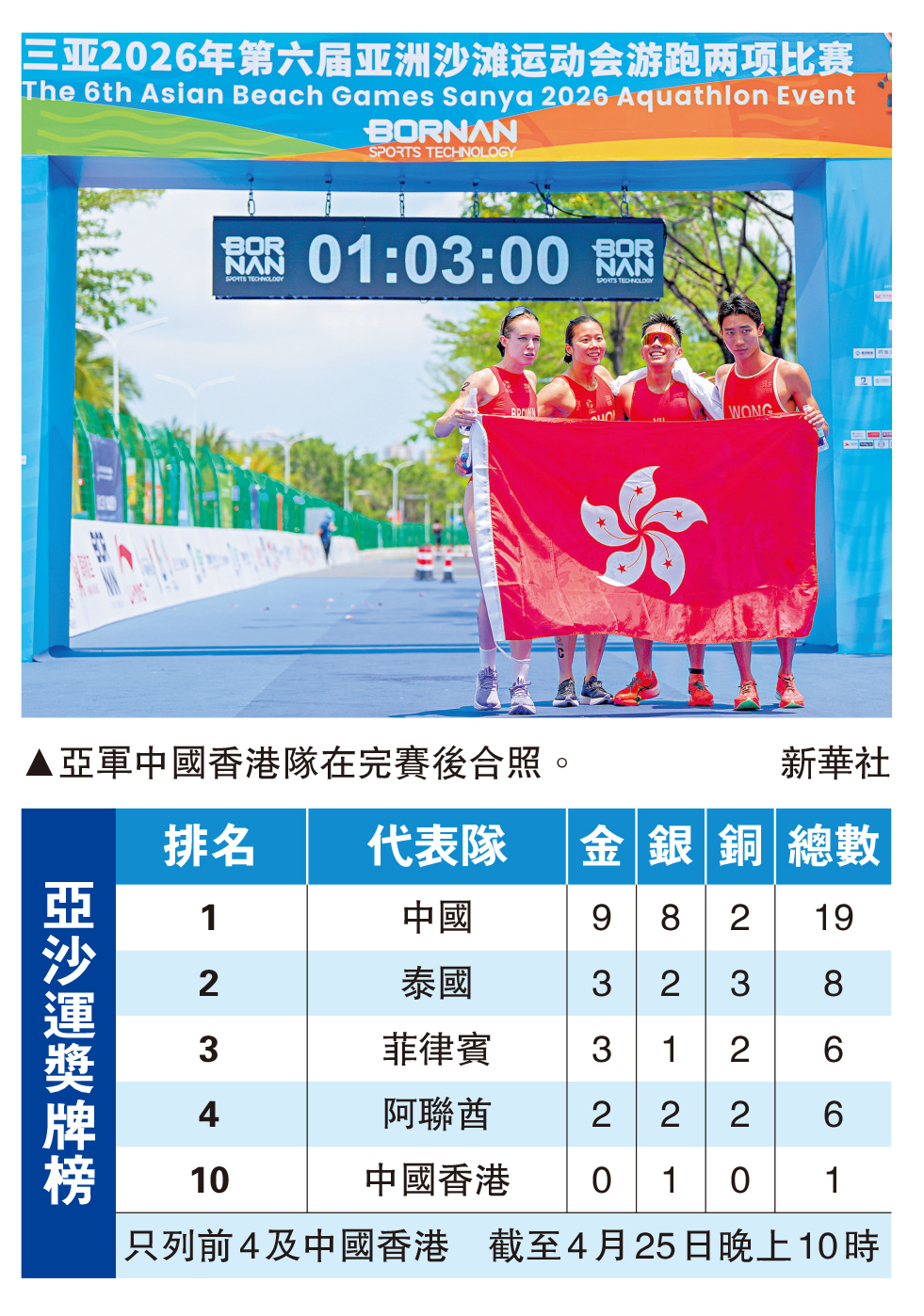 圖:亞沙運獎牌榜
