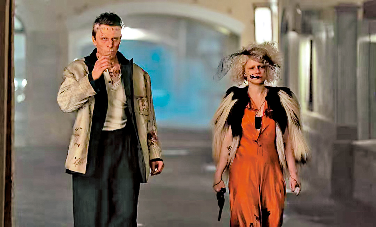 在黑白基調的瑪麗夢囈開場後,故事開啟於上世紀大蕭條時代的美國芝加哥。從1931年的電影《科學怪人》開始為老影迷熟稔的「縫合怪」頂用了締造者弗蘭肯斯坦的大名,在片中懇求一位女博士幫他解決「孤獨」,復活一具年輕女性的屍體當他的新娘,然而這位復活少女又帶有黑幫犯罪的隱情──通過這條副線的疊加,女導演成功地將故事重心移到了嘴角和舌頭始終保持一團漆黑的新娘身上……