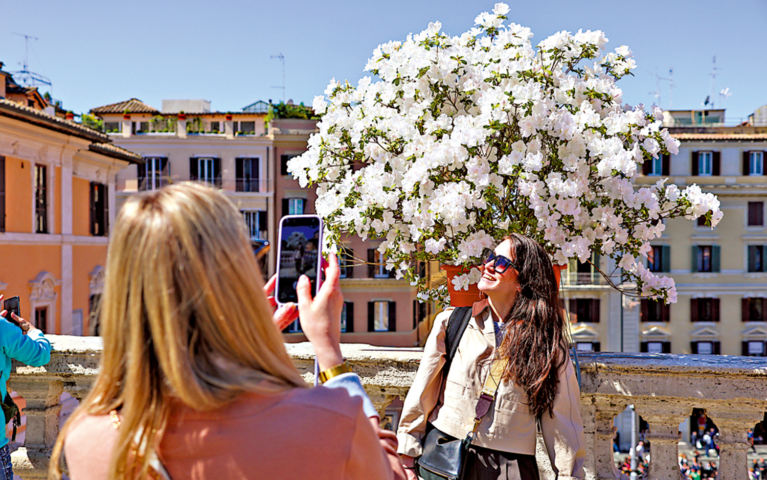 近日,意大利首都羅馬氣溫上升,城市各處繁花盛開,吸引世界各地遊客前來觀賞,為千年古城增添浪漫色彩。\新華社