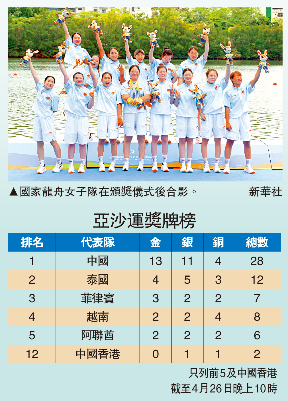 圖:亞沙運獎牌榜