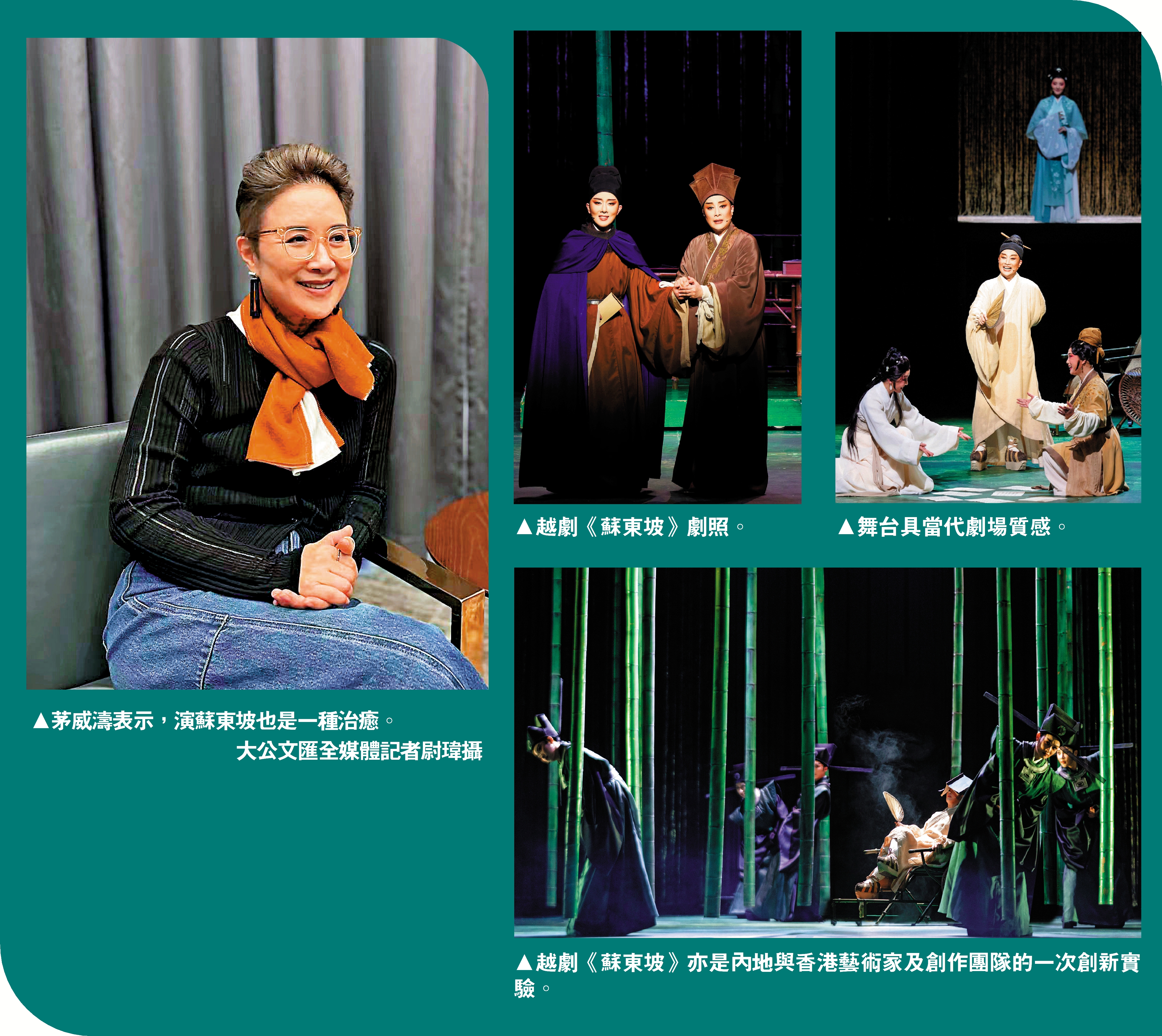茅威濤說,正因如此,演這個戲,對她來說也是一種治癒,靠近蘇東坡的精神層面,亦能滋養自己。「所以每次演出這個戲都是酣暢淋漓。」