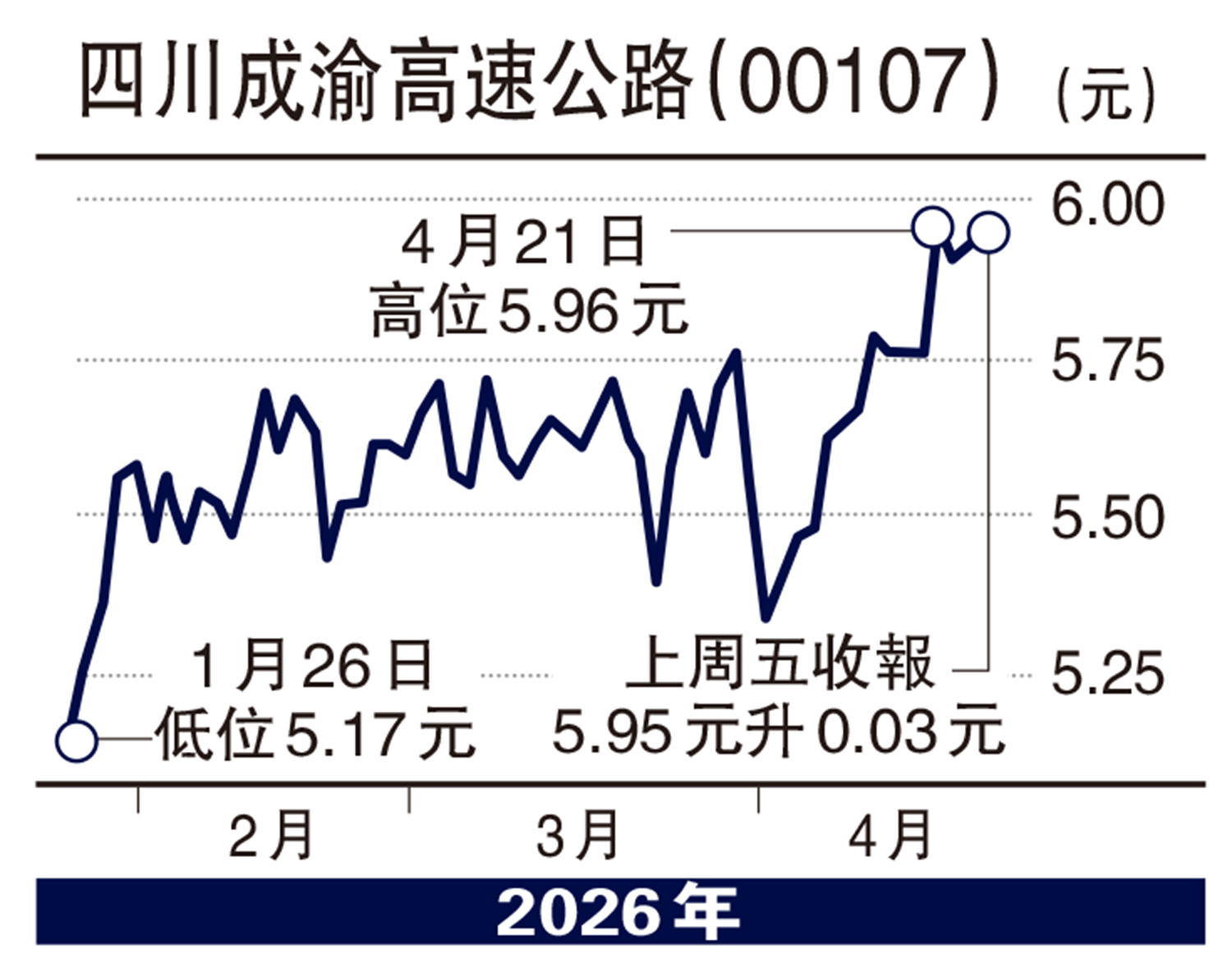 不過,證券界對四川成渝2026年的業績展望有較正面期望,主要是3月份完成收購湖北荊宜高速公路的85%權益,即該項目可以在今年提供盈利貢獻。荊宜高速於2024年度錄得淨利潤約1.92億元。中金估計,荊宜公司今年有望提供2億元的利潤貢獻。