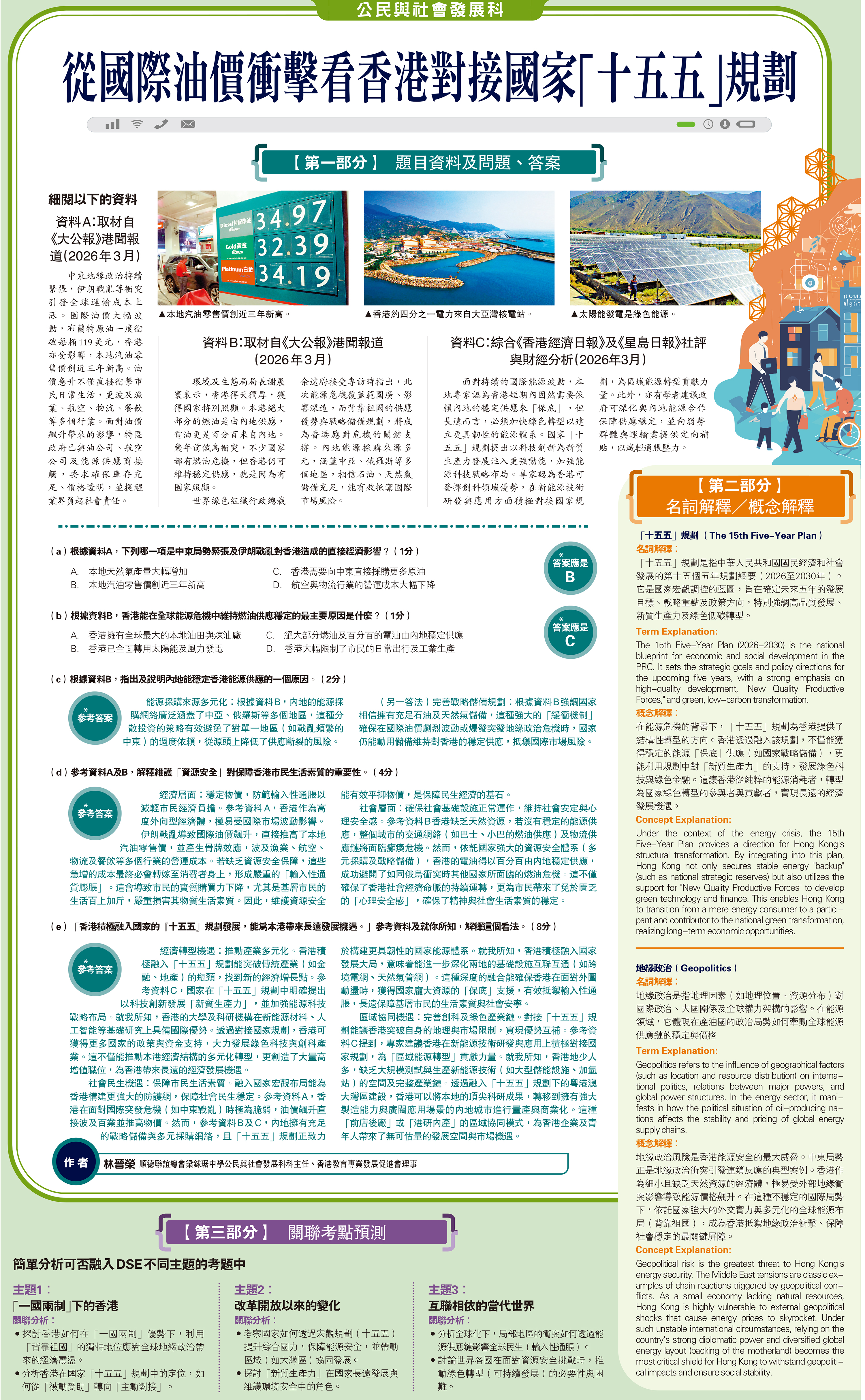 (e)「香港積極融入國家的『十五五』規劃發展,能為本港帶來長遠發展機遇。」參考資料及就你所知,解釋這個看法。(8分)