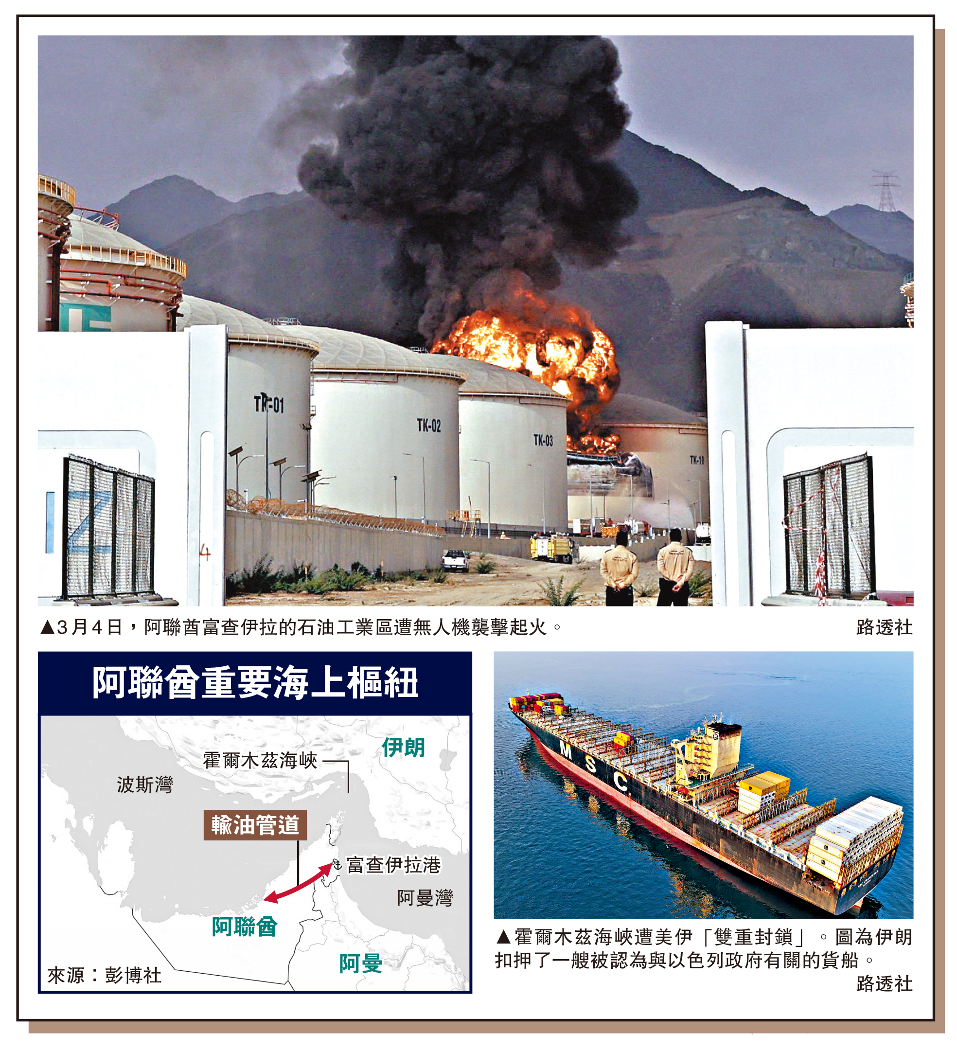 數據顯示,阿聯酋高度依賴霍爾木茲海峽出口原油,在伊朗戰事爆發前,每天經由這一咽喉要道運出150萬至200萬桶原油。