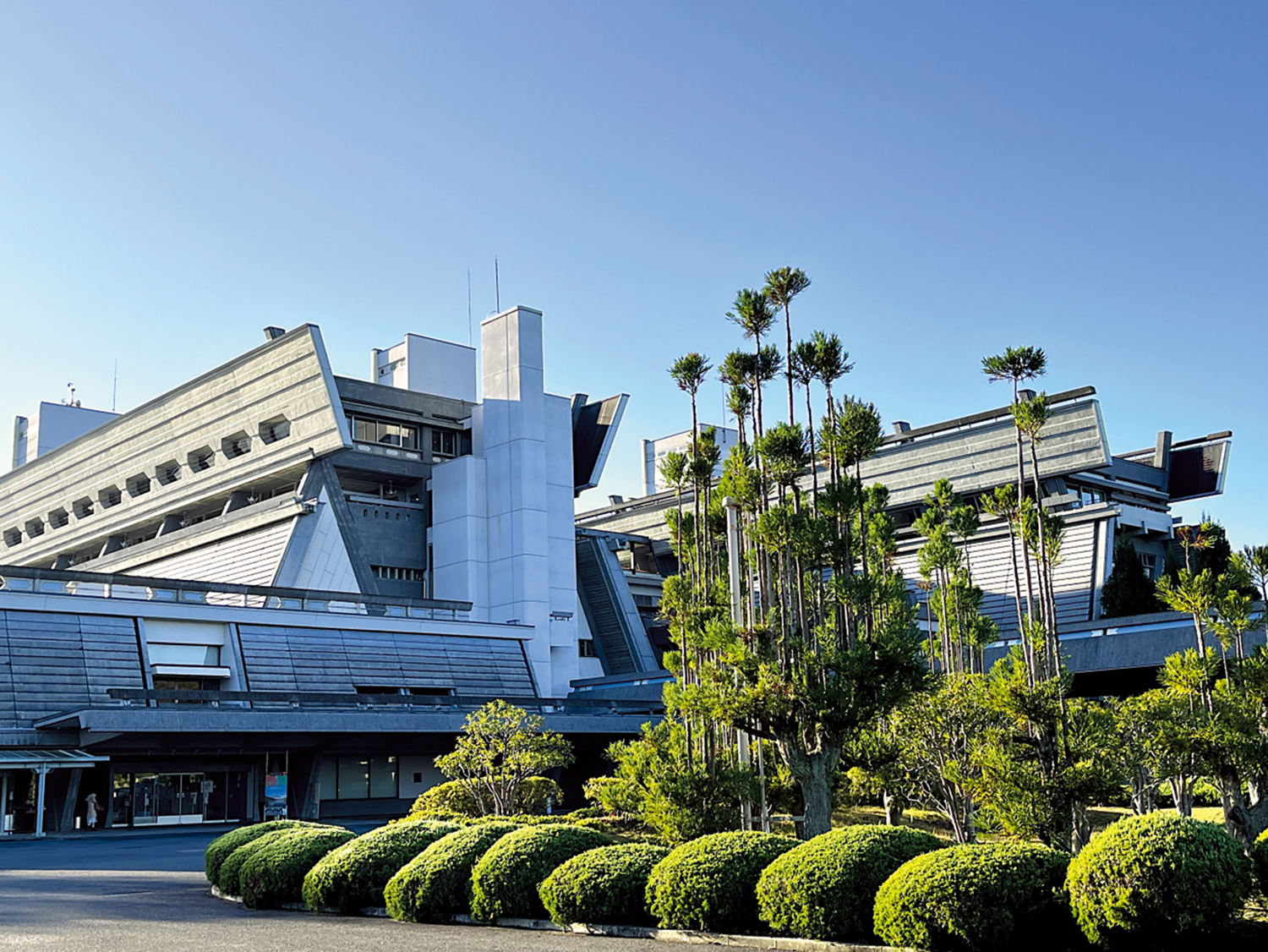 京都國際會館雖然是現代的鋼筋混凝土結構,卻表現出日本傳統建築的神態。梯形正反組合的造型令人聯想到日本的古神社和古民居。同時,長長的、帶有一排六角窗的側壁像是科幻影片中的太空飛船的船舷,帶有未來主義的意象。粗獷的、岩石般的牆體與自然環境渾然天成,錯落起伏的建築輪廓與叡山遙相呼應。按大谷的話講,這是建築與自然環境在「對話」。