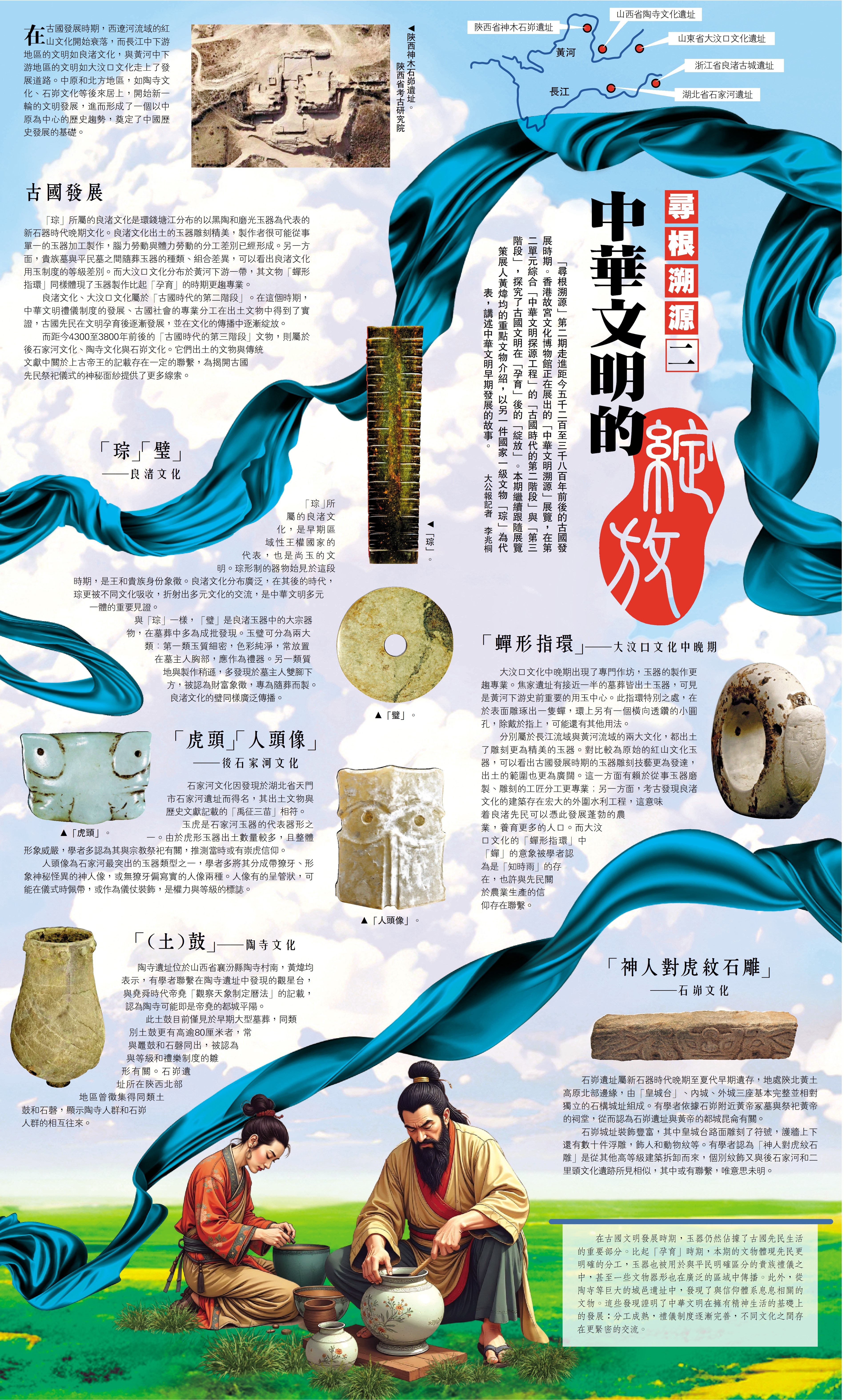 「尋根溯源」第二期走進距今五千二百至三千八百年前後的古國發展時期。香港故宮文化博物館正在展出的「中華文明溯源」展覽,在第二單元綜合「中華文明探源工程」的「古國時代的第二階段」與「第三階段」,探究了古國文明在「孕育」後的「綻放」。本期繼續跟隨展覽策展人黃煒均的重點文物介紹,以另一件國家一級文物「琮」為代表,講述中華文明早期發展的故事。\大公報記者 李兆桐